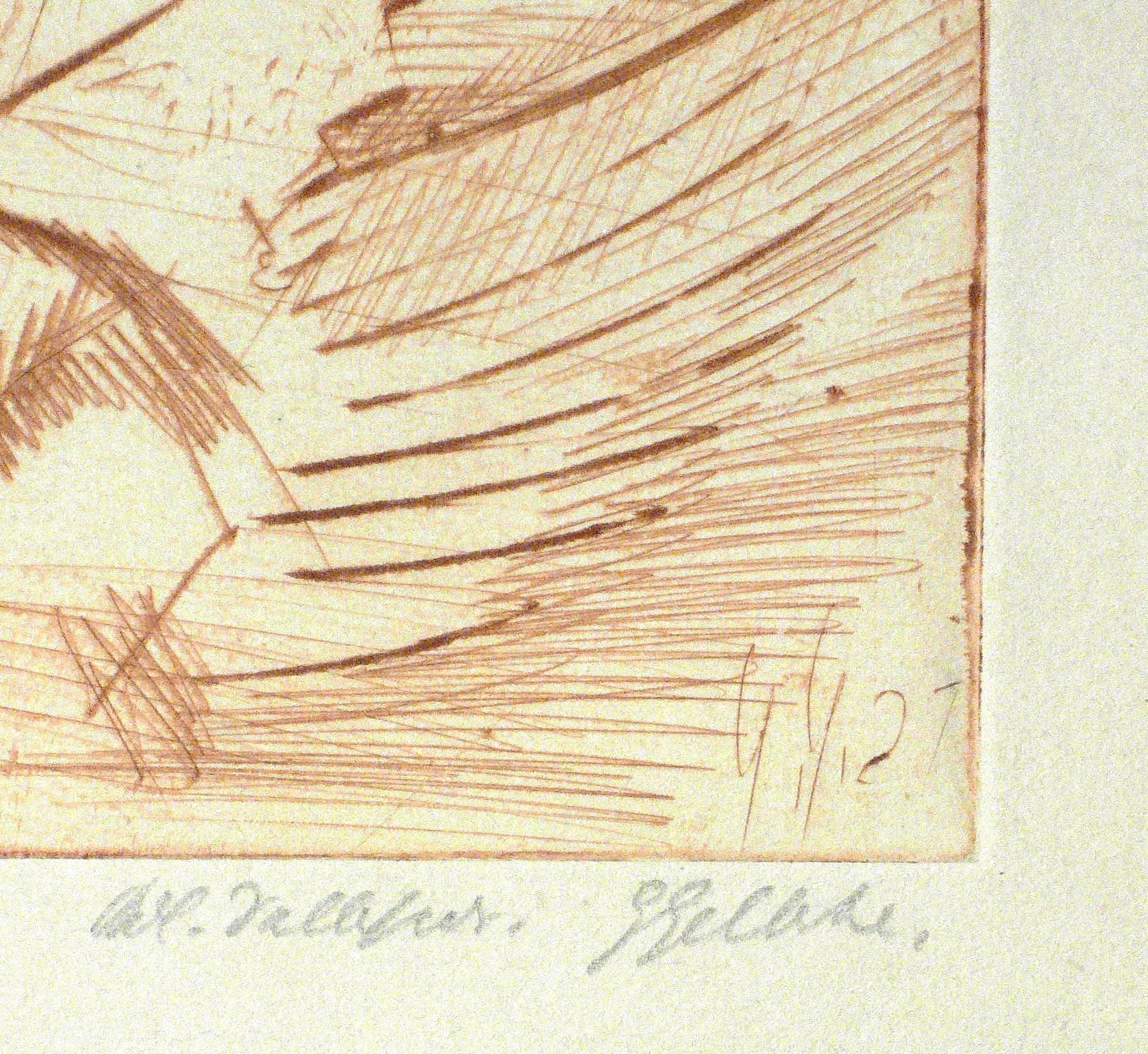 1921. Radierung / Kaltnadel, in Rotbraun, auf hellem Velin. – Originale Künstlergrafik, von Georg Gelbke. – Selbstdruck Nr. 1. – 17,0 x 16,0 cm (Darstellung / Platte), 29 x 22 cm (Blatt).