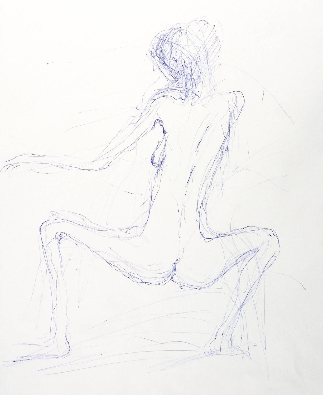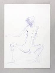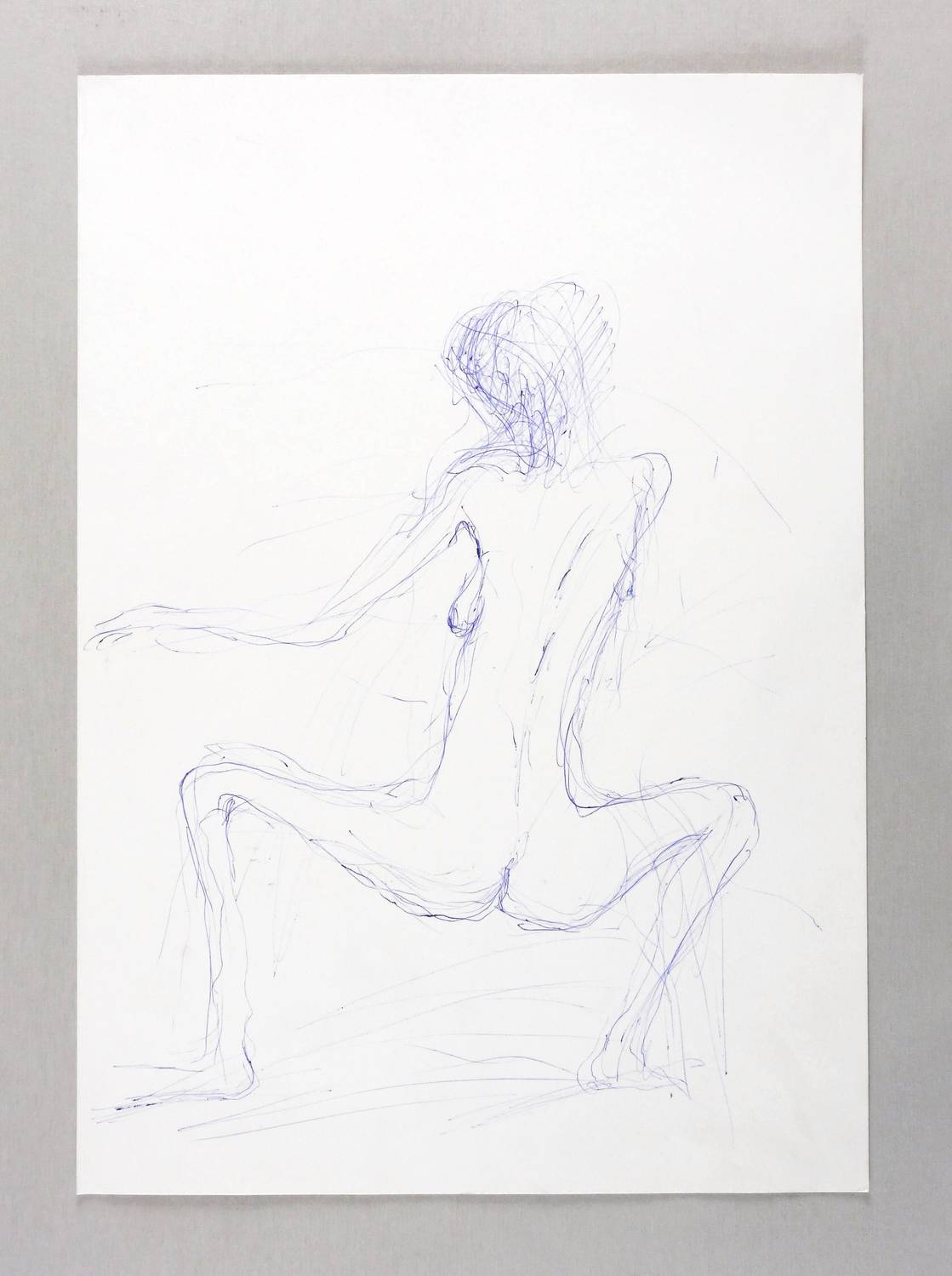 Um 1990. Zeichnung / Kugelschreiber, in Blau, auf hellem glattem Velin. – Originale Künstlergrafik, von Falko Warmt. – Unikat. – 42,1 x 29,7 cm (Darstellung / Blatt).