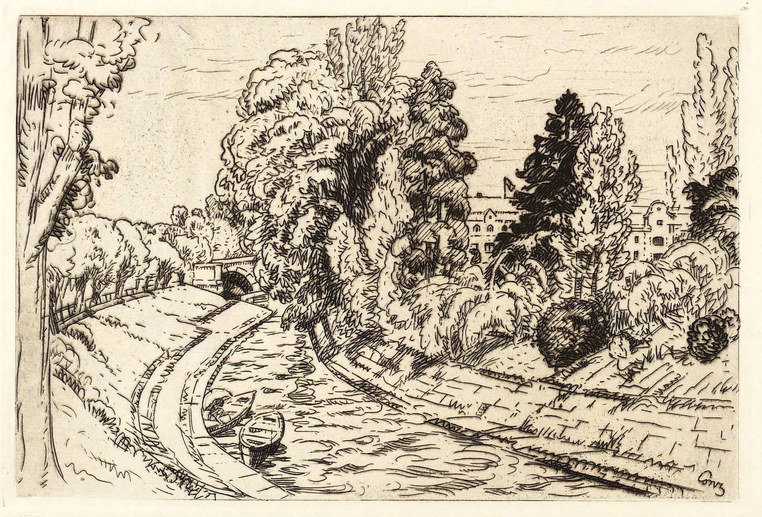 Aus: 30. Jahresmappe des Vereins für Original-Radierung Karlsruhe (Karlsruhe: Kunstdruckerei Künstlerbund 1928), Bd. 30. – In der Platte rechts unten signiert: ″Conz″. Links Trockenstempel des Vereins für Original-Radierung Karlsruhe. – Originalrandiges Exemplar. Tadellos. Sehr guter Zustand.