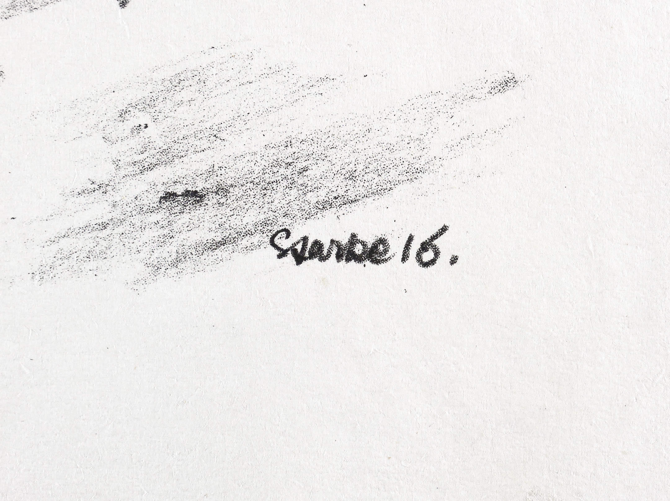 Verso in Bleistift signiert: ″O. Starke″. Dazu bezeichnet: ″Probeabzug aus der Druckerei Lassally, Berlin″. Im Stein rechts unten Signatur und Jahr: ″Starke 16.″ – Blatt Nr. 3 aus der Folge ″Die neue Gesellschaft″, die 1916 in der Zeitschrift ″Bildermann″ erschien (Der Bildermann. Steinzeichnungen fürs deutsche Volk, Berlin: Paul Cassirer 1916. - Hier der autorisierte Probedruck vor der Auflage für den ″Bildermann″. – Tadellos erhalten. Sehr guter Zustand.