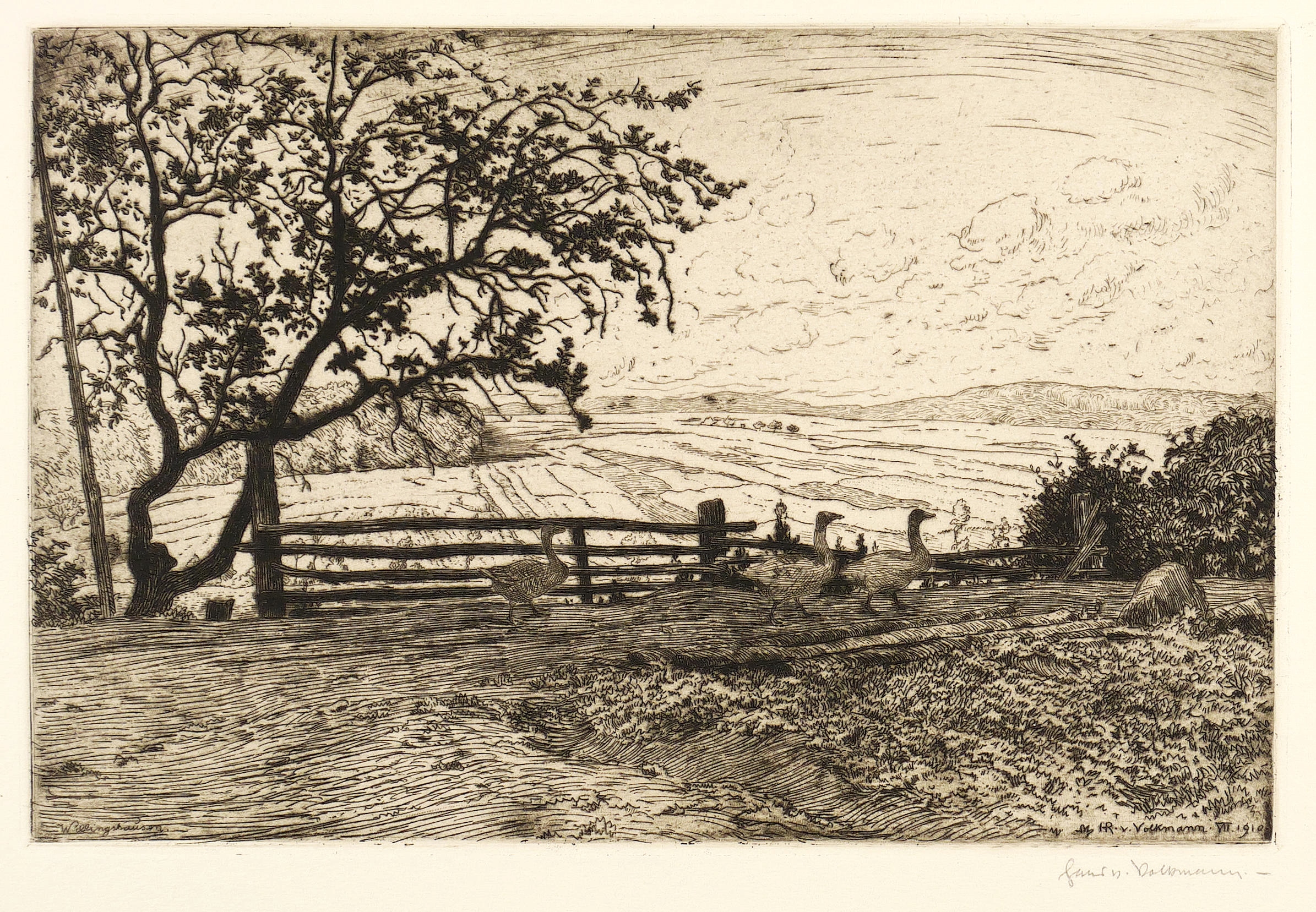 1910. Radierung / Strichätzung & Kaltnadel, mit Plattenton, in Schwarz, auf Kupferdruckbütten. – Originale Künstlergrafik, von Hans Richard von Volkmann. – 19,3 x 29,3 cm (Darstellung), 19,7 x 29,9 cm (Platte), 37 x 48 cm (Blatt).