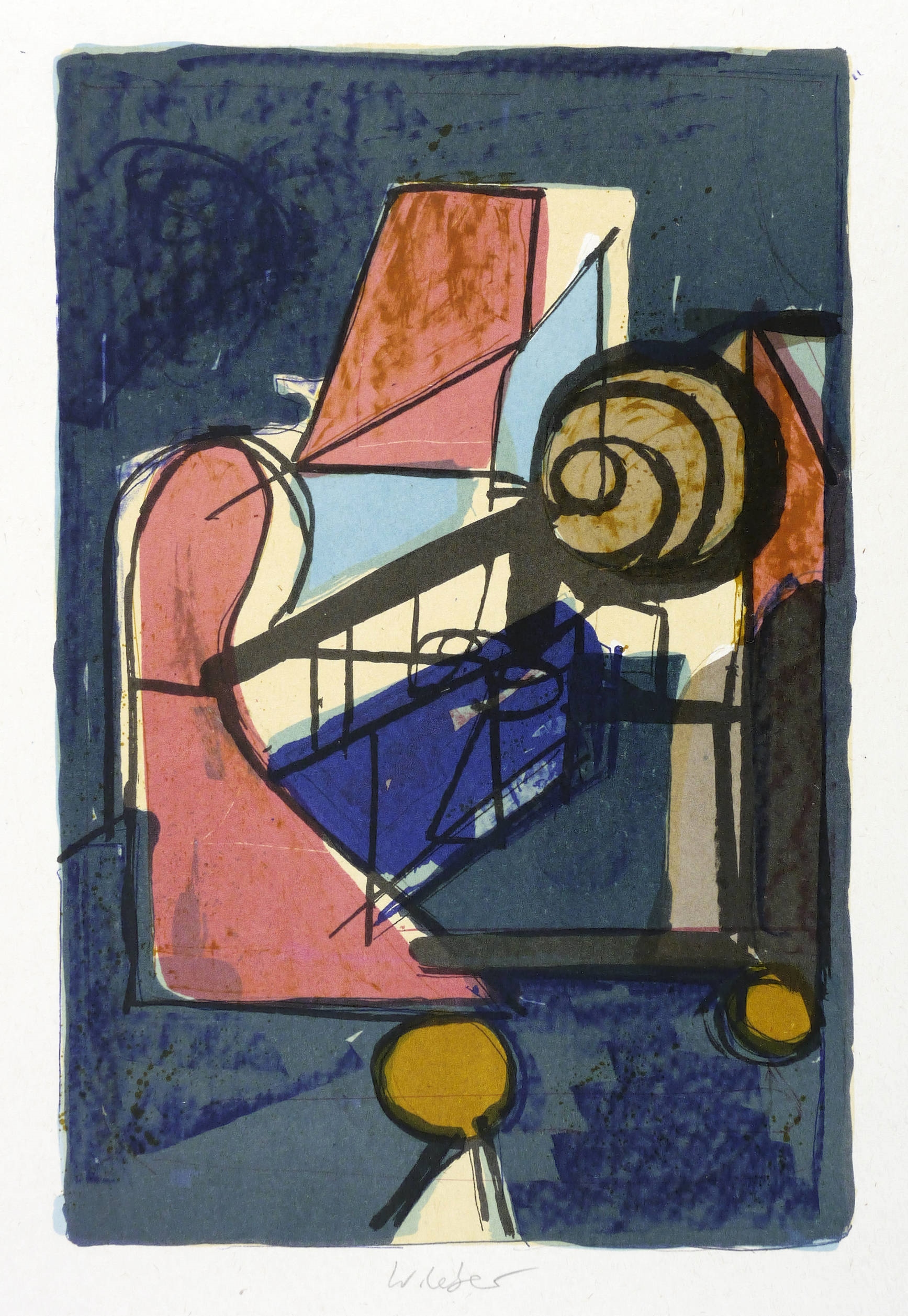 1998. Farblithografie / Kreide- & Pinsellithografie, in 8 Farben, auf hellem glattem Velinkarton. – Originale Künstlergrafik, von Wolfgang Leber. – Auflage 300 Exemplare. – 30,5 x 20,4 cm (Darstellung), 45 x 35 cm (Blatt).