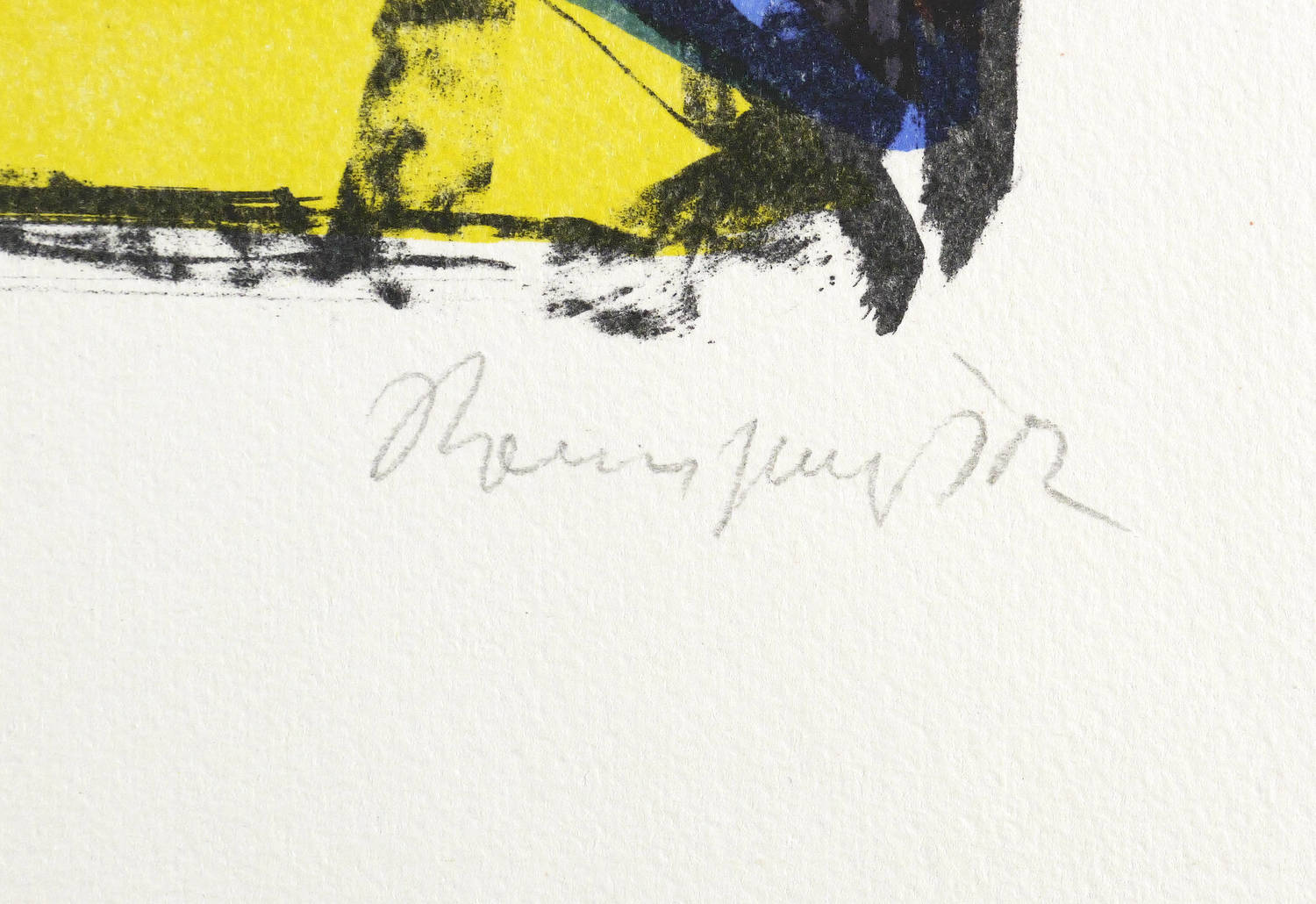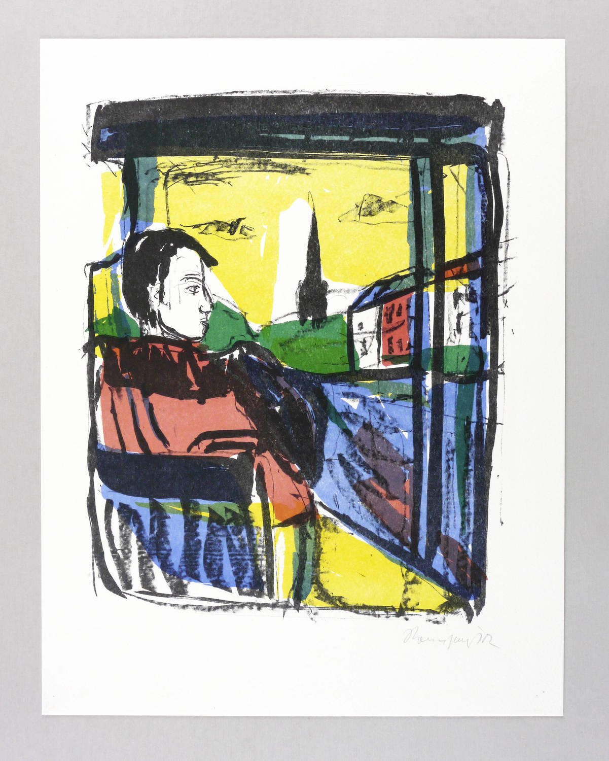 2002. Farblithografie / Kreide- & Pinsellithografie, in 5 Farben, auf glattem hellchamois Velinkarton. – Originale Künstlergrafik, von Klaus Roenspieß. – Auflage 300 Exemplare. – 34,8 x 28,3 cm (Darstellung / Druckbild), 45 x 35 cm (Blatt).