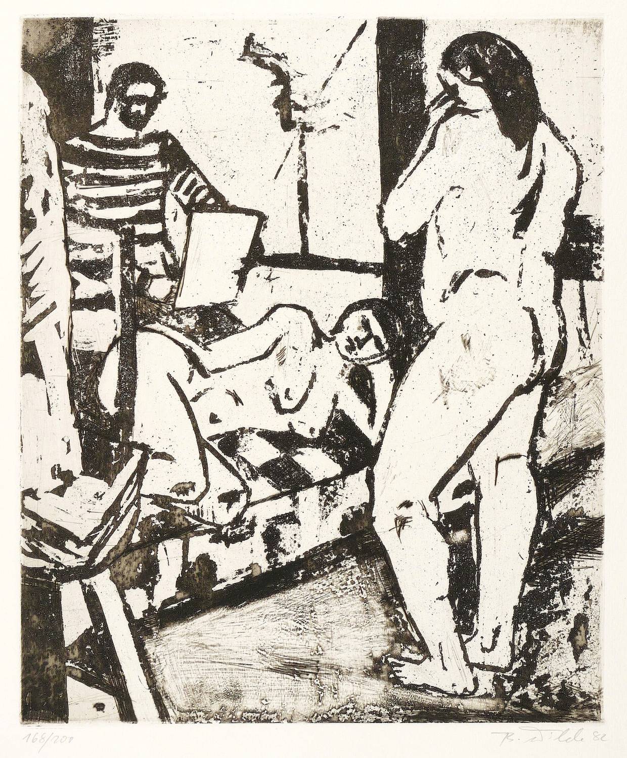 1982. Radierung / Reservage & Kaltnadel, mit Plattenton, in Schwarz, auf Weißenborn-Bütten. – Originale Künstlergrafik, von Berndt Wilde. – Auflage Exemplar Nr. 168/200. – 30,0 x 24,8 cm (Darstellung / Platte), 36,5 x 33,5 cm (Blatt).