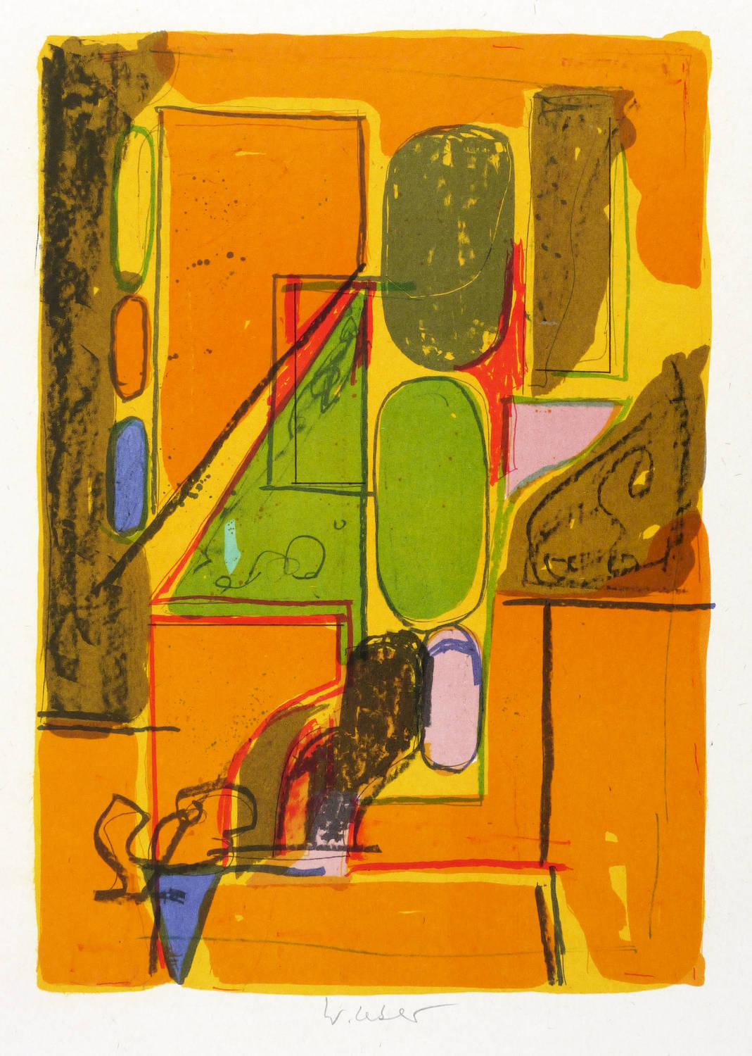 1998. Farblithografie / Kreide- & Pinsellithografie, in 8 Farben, auf hellem glattem Velinkarton. – Originale Künstlergrafik, von Wolfgang Leber. – Auflage 300 Exemplare. – 30,2 x 21,3 cm (Darstellung), 45 x 35 cm (Blatt).