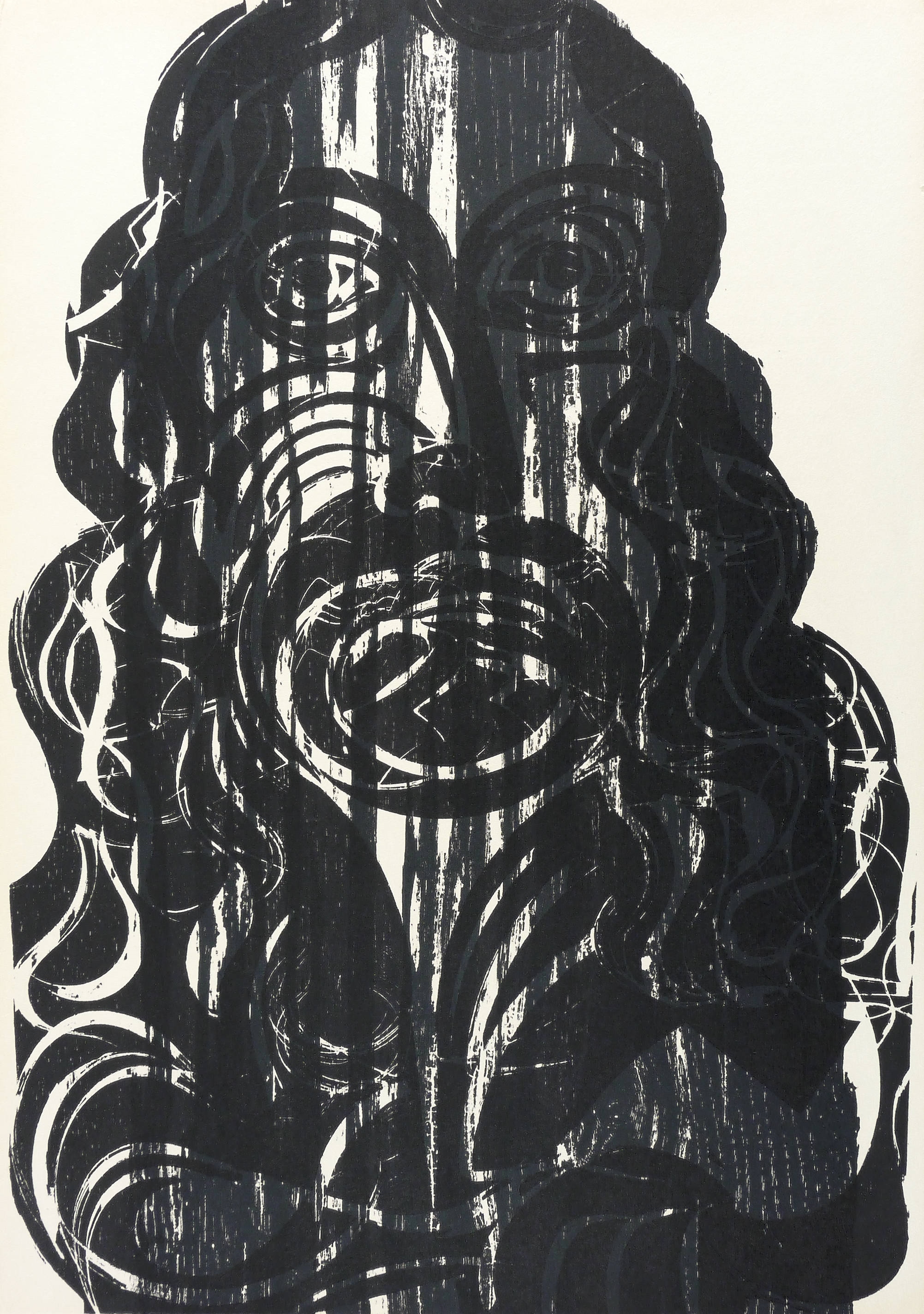 1971. Farbholzschnitt, in Grau & Schwarz, auf hellchamois Velin. – Originale Künstlergrafik, von HAP Grieshaber. – 44,0 x 33,8 cm (Darstellung / Blatt).