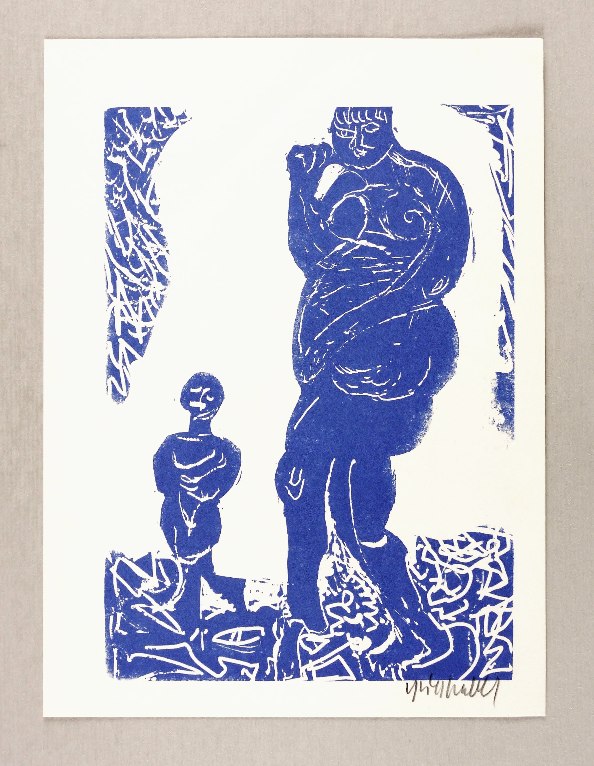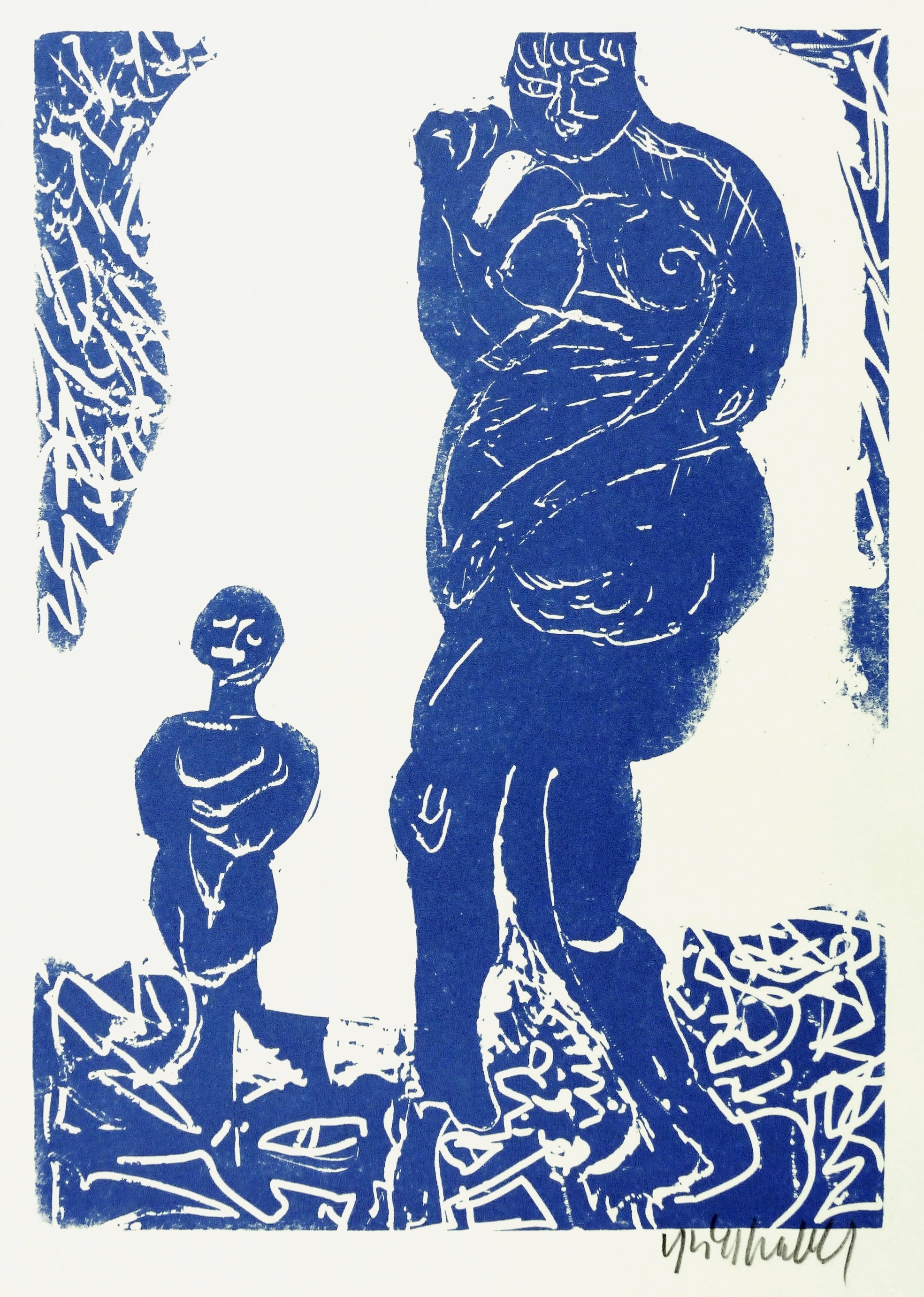 1968. Holzschnitt, in Dunkelblau, auf hellchamois Werkdruckpapier. – Originale Künstlergrafik, von HAP Grieshaber. – 22,9 x 16,5 cm (Darstellung / Druckbild), 28 x 20 cm (Blatt).