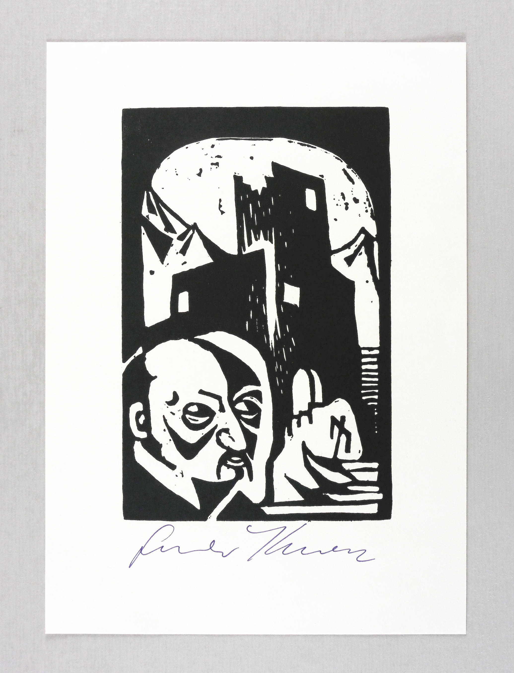 Unterhalb mit Faserstift signiert: ″Günter Kunert″. – Dieser Linolschnitt fand Verwendung für die Einbandgestaltung des Buches: Günter Kunert, Begleitheft zur Ausstellung der Stadt- und Universitätsbibliothek, Frankfurt am Main: Stadt- und Universitätsbibliothek 1981). - Signatur wohl später. – Sehr guter Zustand.