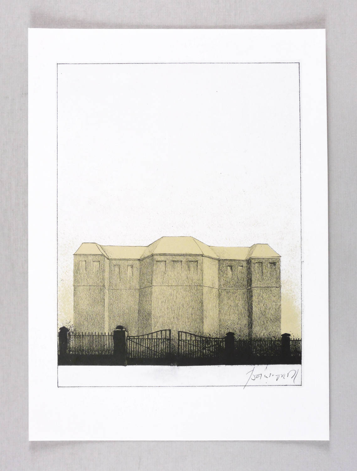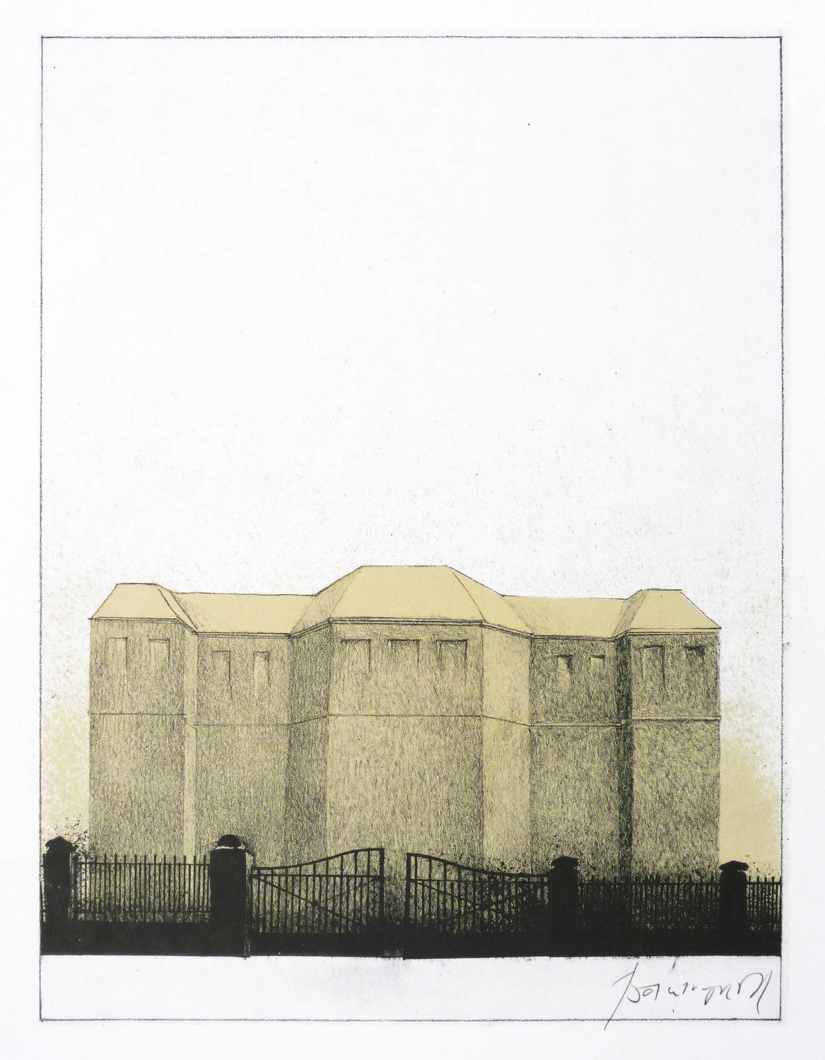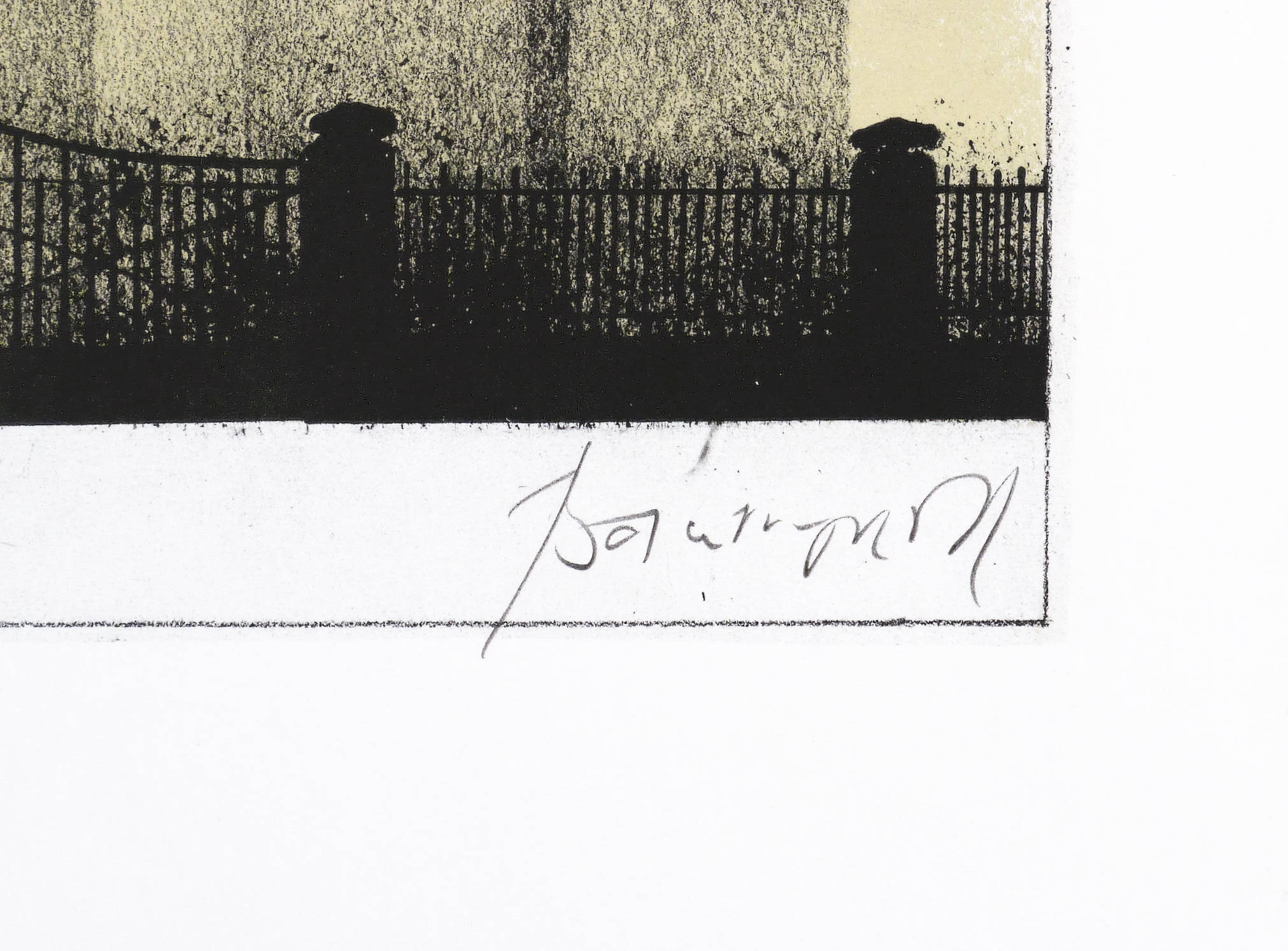 1990. Farboffset, in Ocker & Schwarz, auf glattem weißem Velin. – Originale Künstlergrafik, von Moritz Baumgartl. – 23,5 x 17,7 cm (Darstellung / Druckbild), 30 x 22 cm (Blatt).
