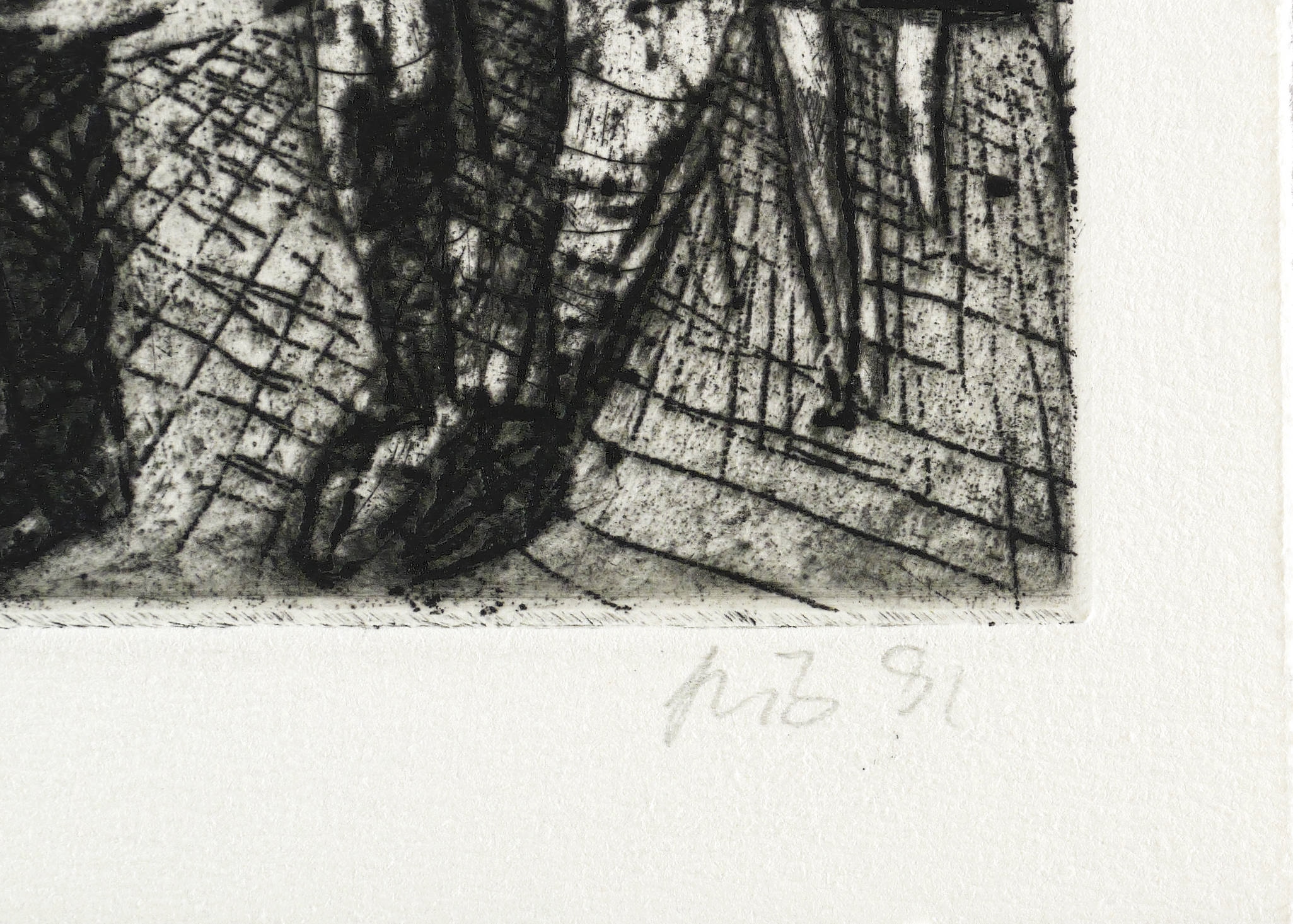 1991. Radierung / Aquatinta & Kaltnadel, in Schwarz, auf hellchamois Velin. – Originale Künstlergrafik, von Werner Liebmann. – Auflage Exemplar Nr. 106/111. – 27,5 x 18,8 cm (Darstellung / Platte), 32 x 22 cm (Blatt).