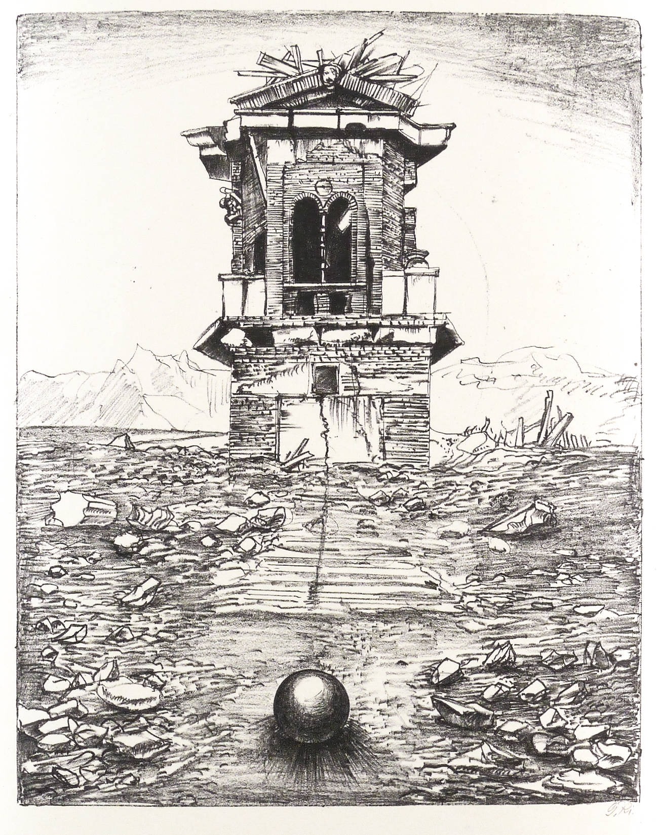 Günter Richter (*1933 Meißen, lebt und arbeitet in Leipzig). Deutscher Maler und Grafiker. 1949-53 Ausbildung zum Bossierer in der Staatlichen Porzellanmanufaktur in Meißen. 1953-58 Studium an der Hochschule für Grafik und Buchkunst in Leipzig (HGB). 1972 Mitbegründer der Leipziger Grafikbörse, 1976-82 Leitung. 1989-92 Lehrer im Jugendstudio des Lindenau-Museums Altenburg. Seit 1990 Dozent an der HGB Leipzig. Ob in Form von zerfallenen Hausfassaden, welkenden Blumen oder Strandgut, Zeit und Verfall ist zentrales Thema fast seines gesamten Werks, das eine surreal verfremdete Romantik kennzeichnet.
