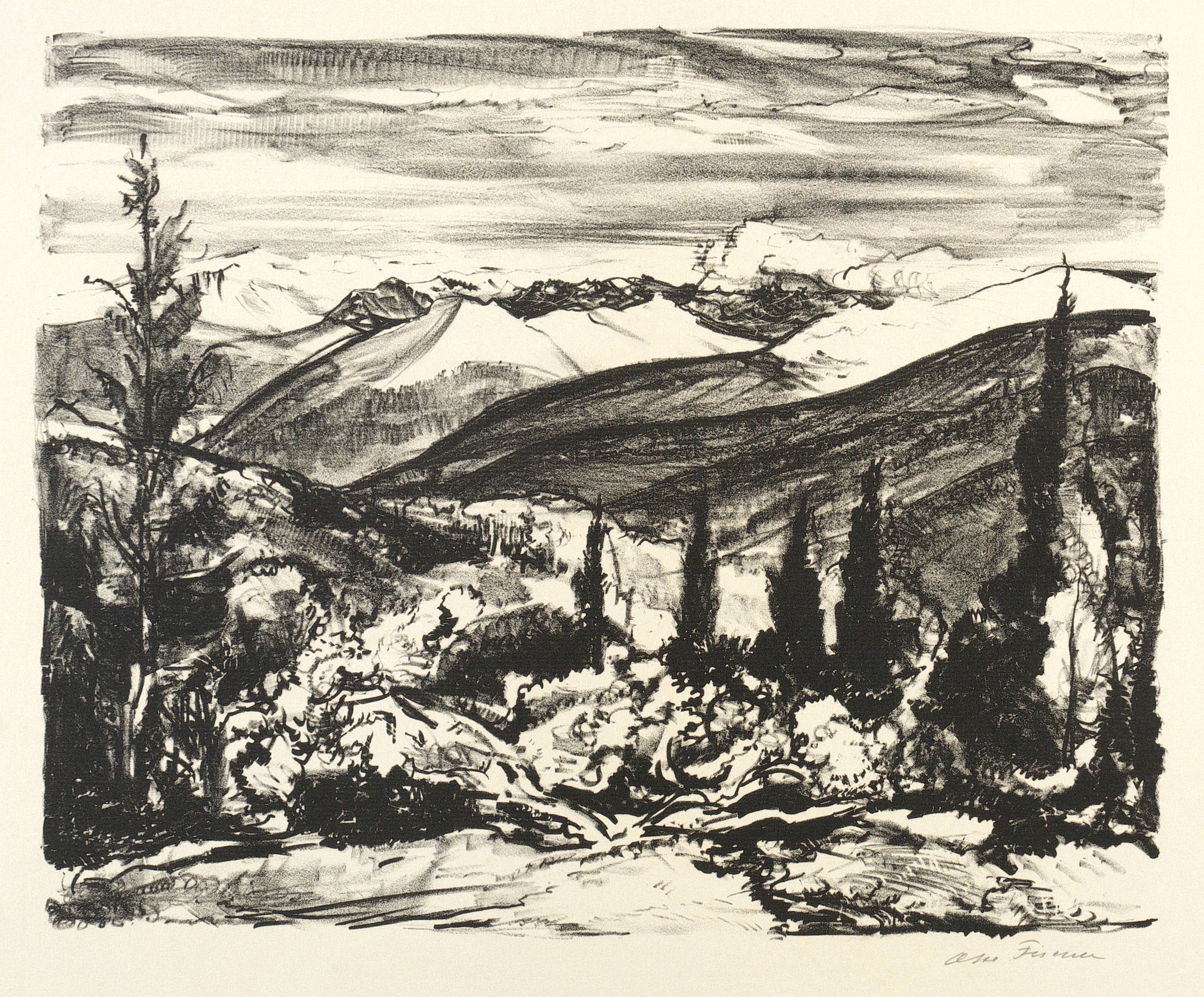 1910-1919. Lithografie / Kreidelithografie, in Schwarz, auf gelblichem Maschinenbütten. – Originale Künstlergrafik, von Otto Fischer. – 27,3 x 33,8 cm (Darstellung), 42 x 49 cm (Blatt).