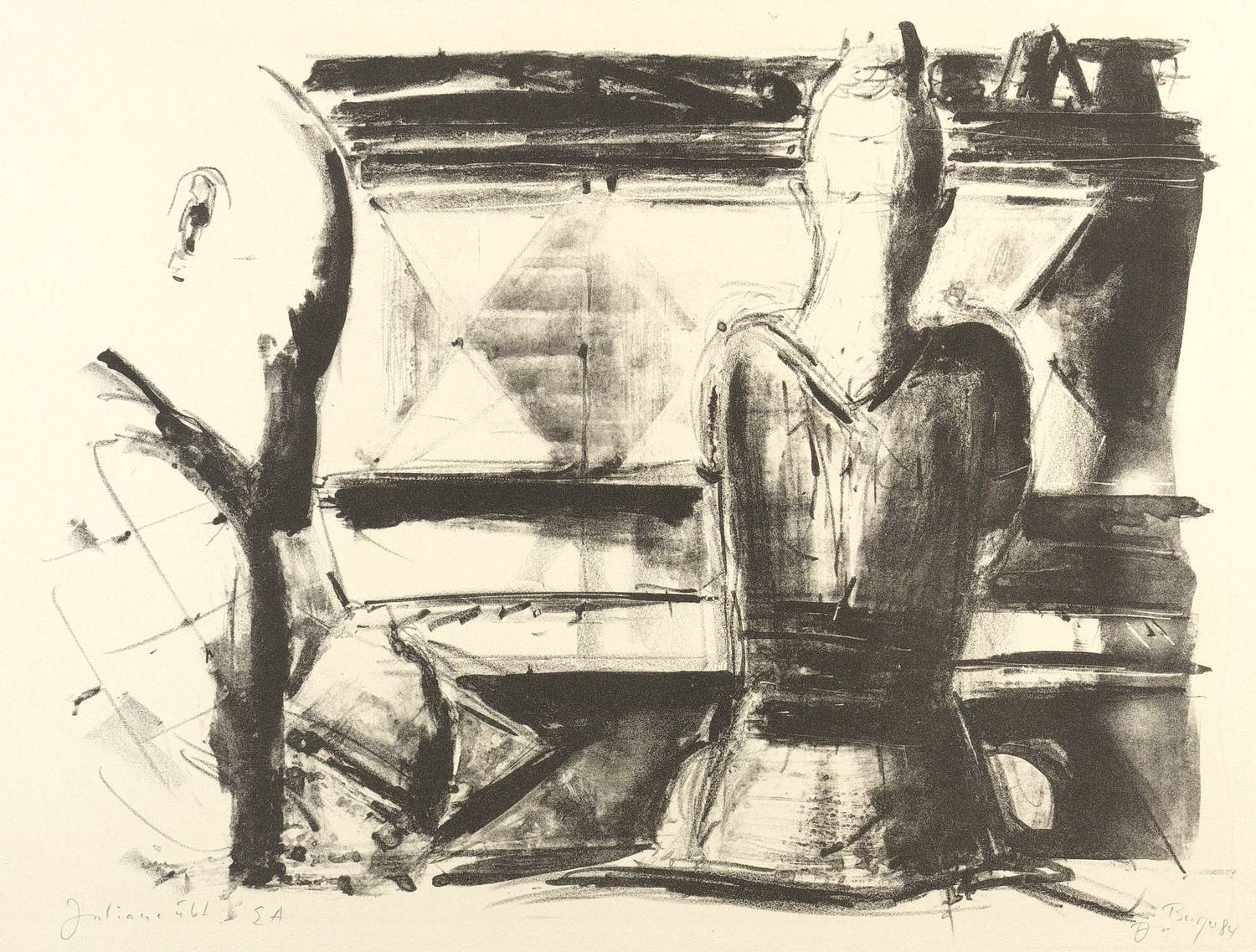 1984. Lithografie / Kreide- & Pinsellithografie, in Schwarz, auf gelbem Hahnemühle-Bütten. – Originale Künstlergrafik, von Dietrich Burger. – Künstlerexemplar (e.a.). – 35,2 x 46,0 cm (Darstellung), 40 x 56 cm (Blatt).