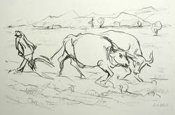 Um 1935. Lithografie / Kreidelithografie, in Schwarz, auf hellchamois Velin. – Originale Künstlergrafik, von Karl August Ohrt. – 26,0 x 43,0 cm (Darstellung), 40 x 52 cm (Blatt).
