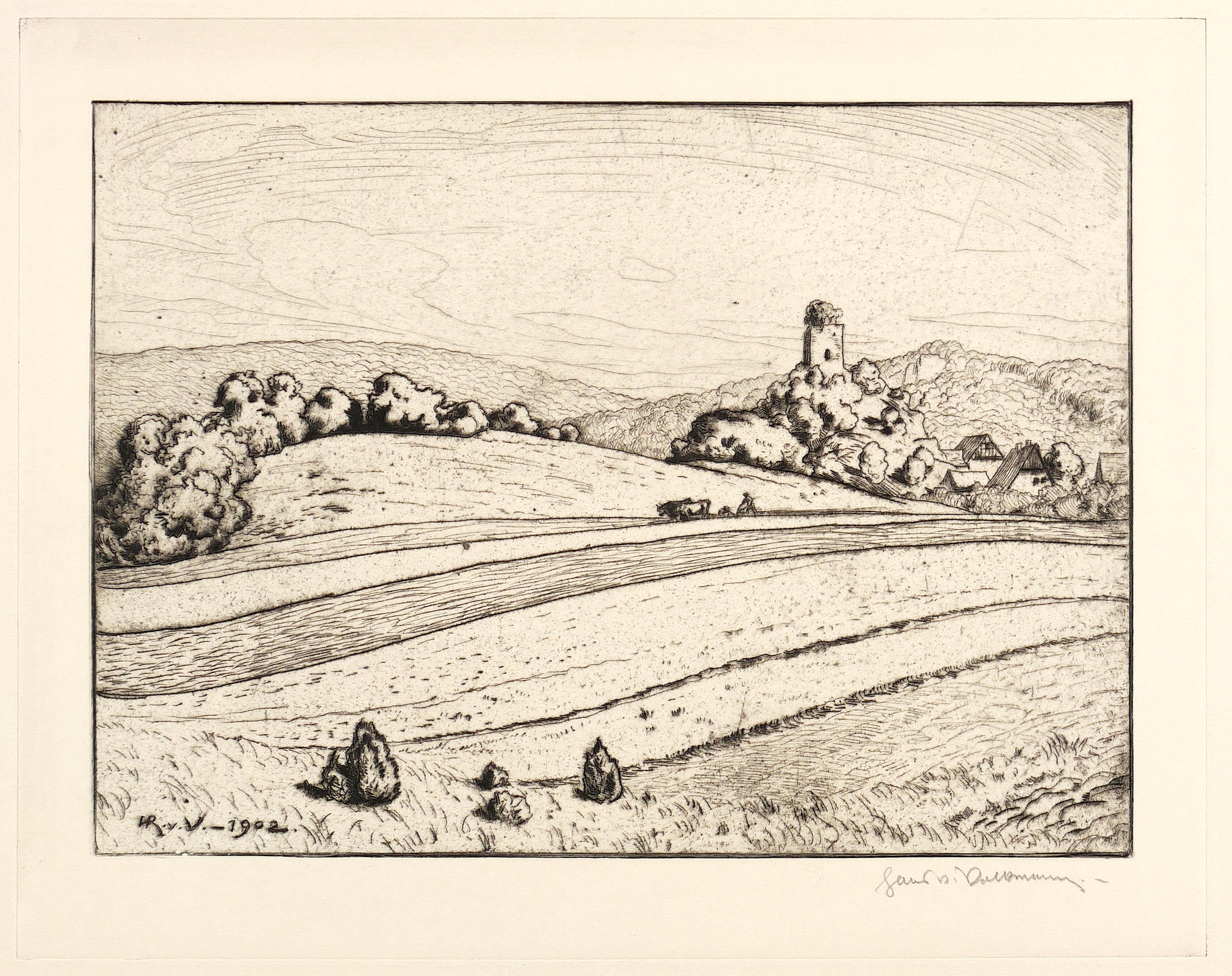Rechts unten in Bleistift signiert. In der Platte links unten signiert und datiert: ″HR. v. V. - 1902.″ Verso Stempel der Kunstdruckerei Künstlerbund Karlsruhe (KKK) mit handschriftlicher Katalognummer ″107″. – Tadellos. Sehr guter Zustand.