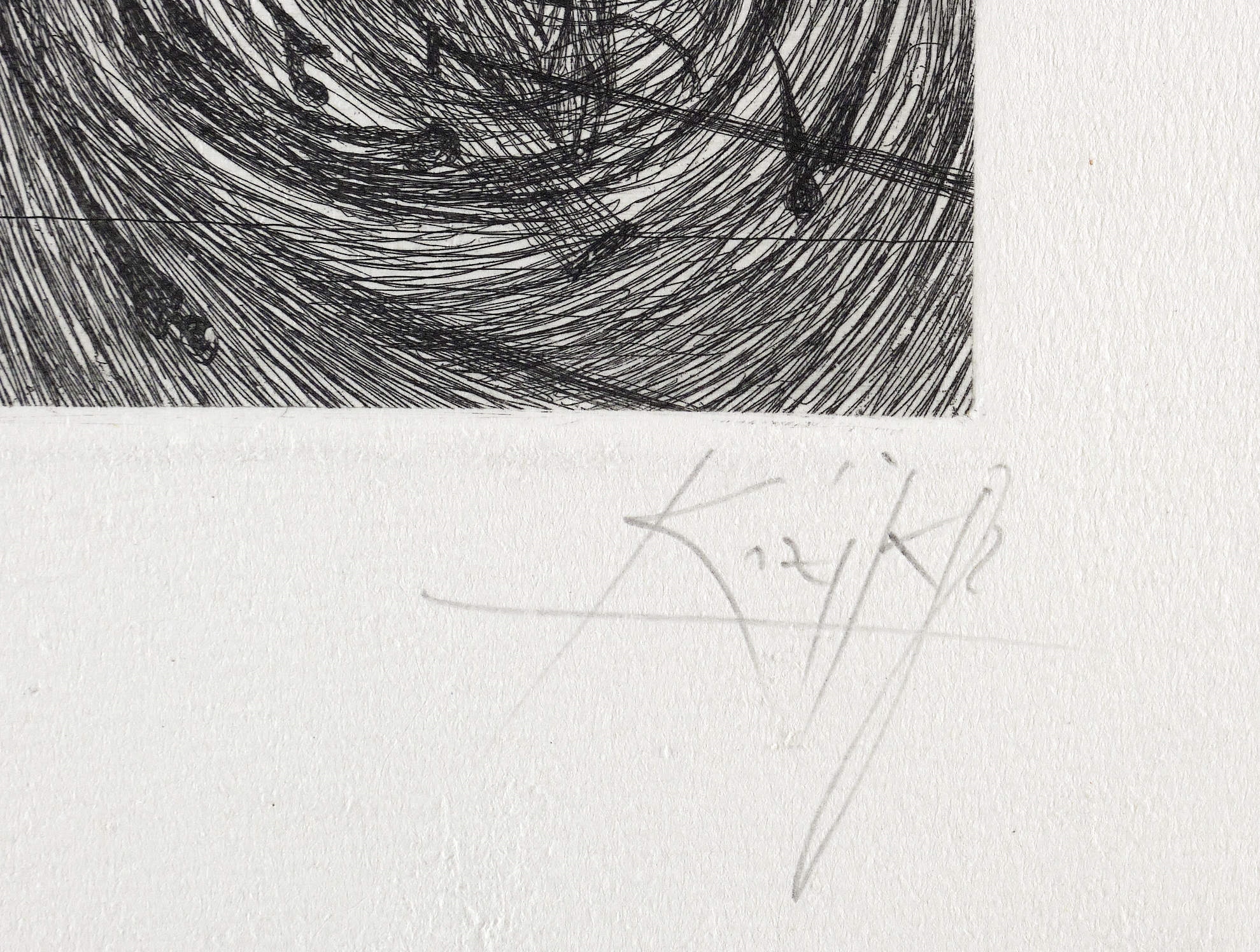 In Bleistift rechts unten signiert und datiert: ″Kozik 82″. In der BLattecke rechts unten Trockenstempel des Druckers. – Sehr guter Zustand.