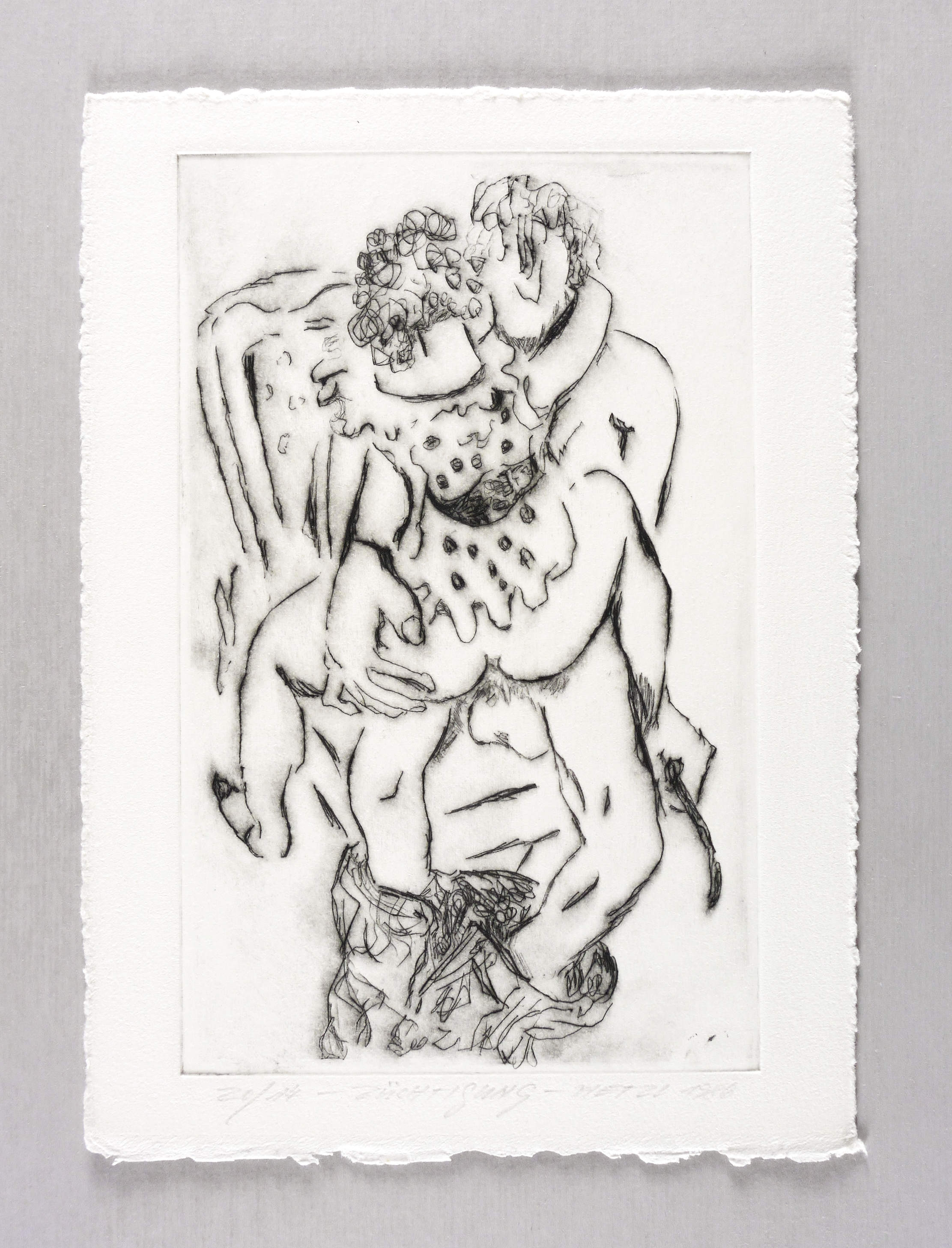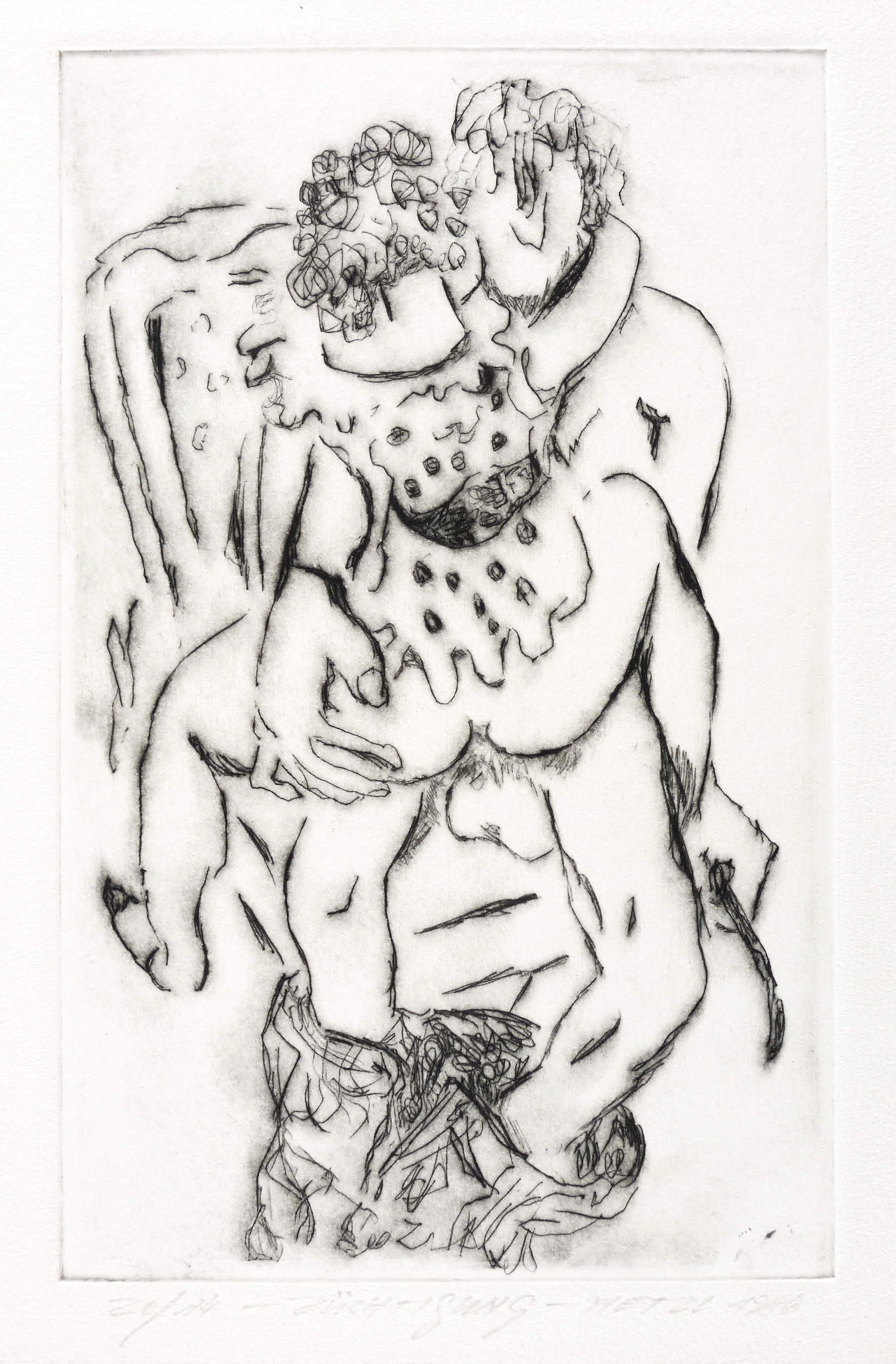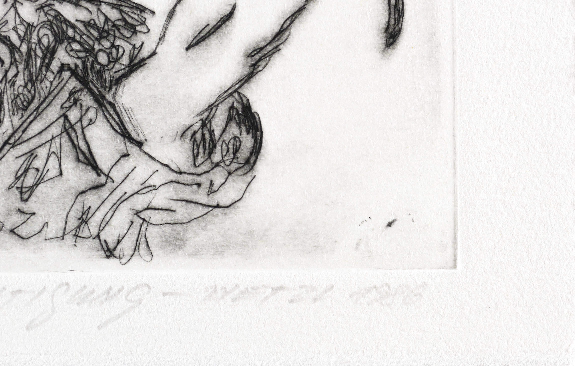 1986. Radierung / Kaltnadel, in Schwarz, auf weißem Büttenkarton. – Originale Künstlergrafik, von Josef Wetzl. – Auflage Exemplar Nr. 14/20. – 23,6 x 14,7 cm (Darstellung / Platte), 27 x 20 cm (Blatt).