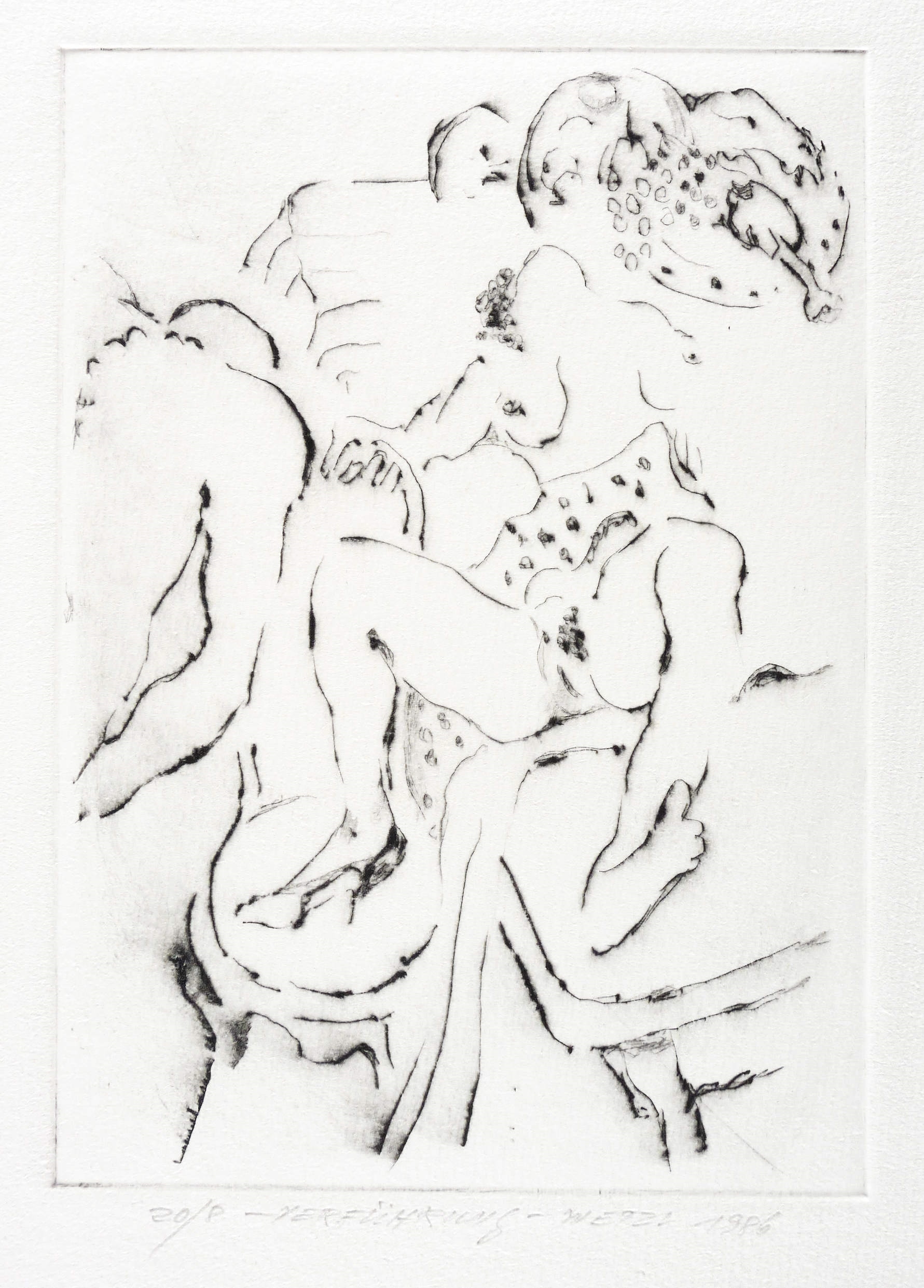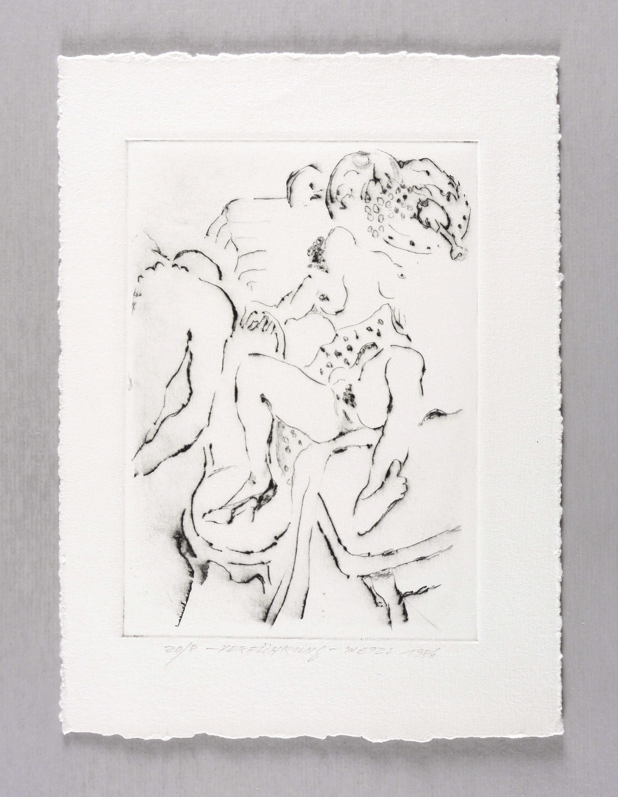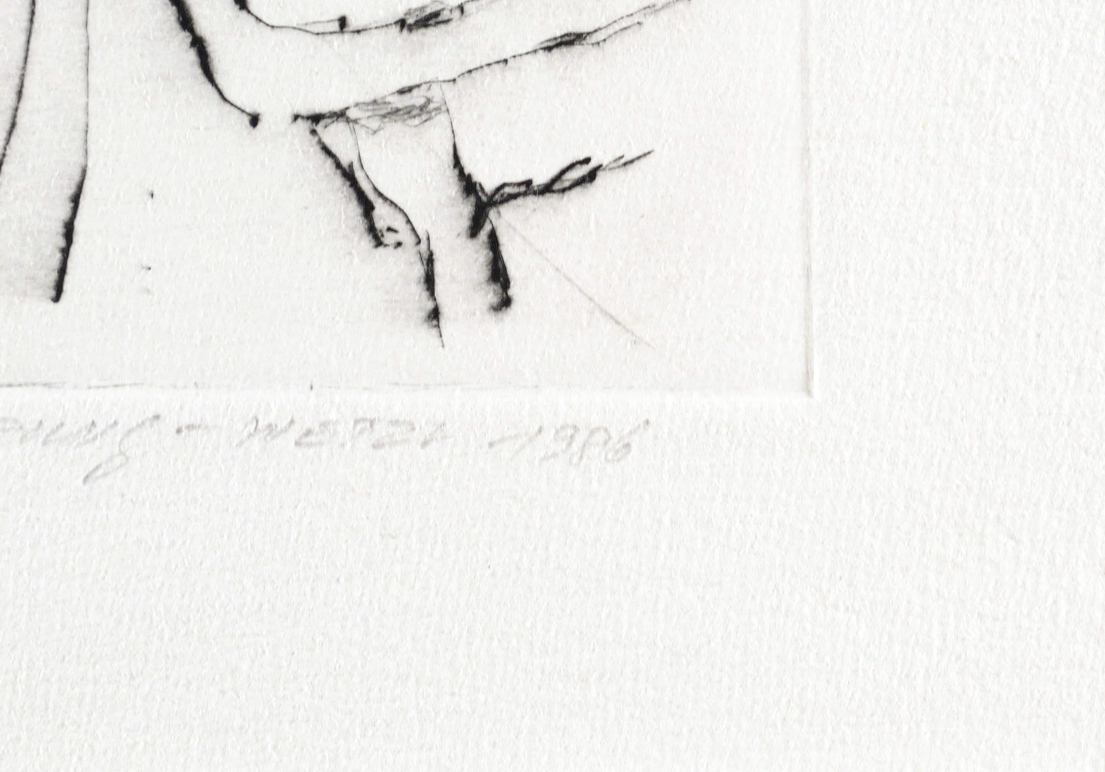 1986. Radierung / Kaltnadel, in Schwarz, auf weißem Büttenkarton. – Originale Künstlergrafik, von Josef Wetzl. – Auflage Exemplar Nr. 8/20. – 19,8 x 13,9 cm (Darstellung / Platte), 27 x 20 cm (Blatt).