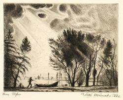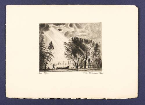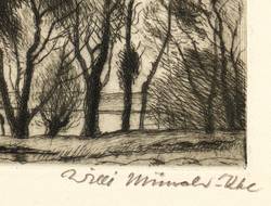 Um 1920. Radierung / Kaltnadel, in Schwarz, auf gelblichem Kupferdruckkarton. – Originale Künstlergrafik, von Willi Münch-Khe. – 9,9 x 12,6 cm (Darstellung / Platte), 19 x 27 cm (Blatt).