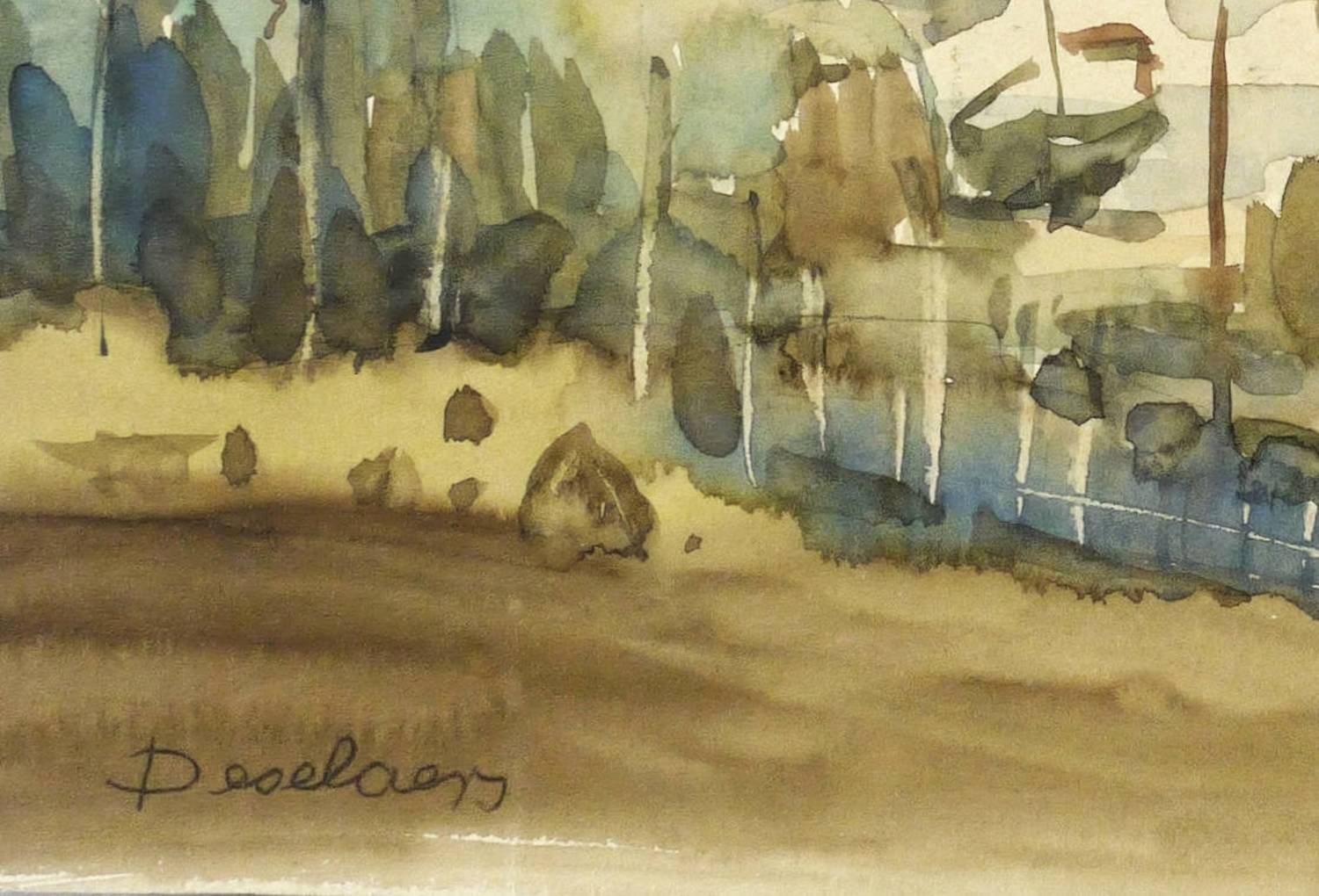 Franz Deselaers (1912 Krefeld-Hüls - 1989 Krefeld-Hüls). Deutscher Maler und Grafiker. Zunächst Lehre zum Samtweber. Bis 1947 in russischer Gefangenschaft. 1947 Mitglied des Krefelder Künstlerkreises und der Krefelder Künstlergilde. Vor allem Landschaft und Ansichten des Niederrheins. Werke Ausstellung im Kaiser Wilhelm Museum Krefeld.