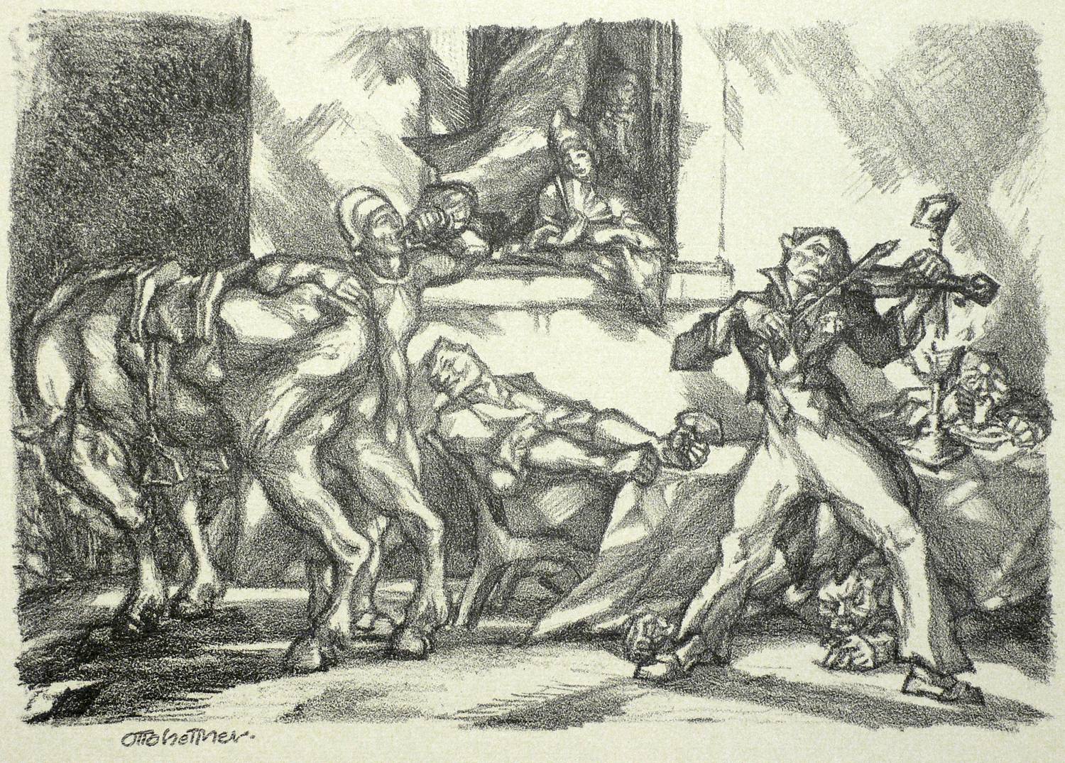 1918. Lithografie / Kreidelithografie. – Originale Künstlergrafik, von Otto Hettner. – Auflage 150 Exemplare. – 20,5 x 30,5 cm (Darstellung / Stein), 33 x 41 cm (Blatt).