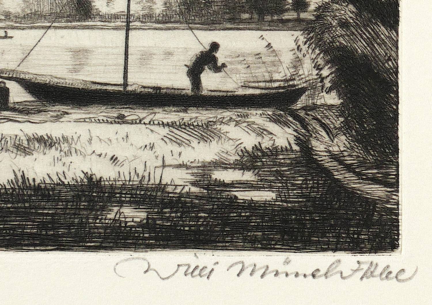 1921. Radierung / Strichätzung & Kaltnadel, in Schwarz, auf hellem Büttenkarton. – Originale Künstlergrafik, von Willi Münch-Khe. – 9,9 x 13,9 cm (Darstellung / Platte), 24 x 32 cm (Blatt).