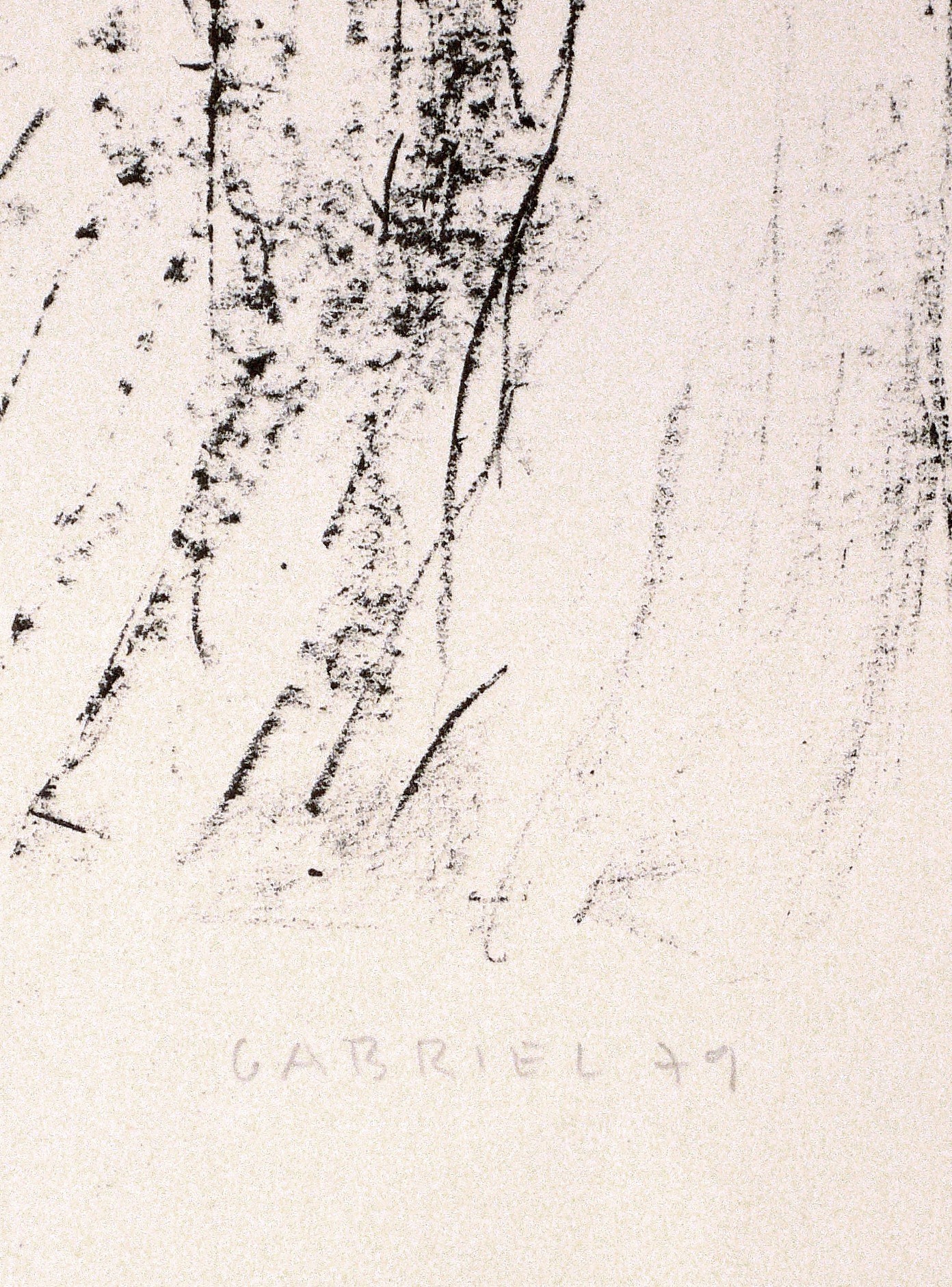 1979. Lithografie / Kreidelithografie, in Schwarz, auf weißem Velin. – Originale Künstlergrafik, von Manfred Gabriel. – Auflage Exemplar Nr. 1/80. – 36,0 x 25,5 cm (Darstellung), 50 x 40 cm (Blatt).