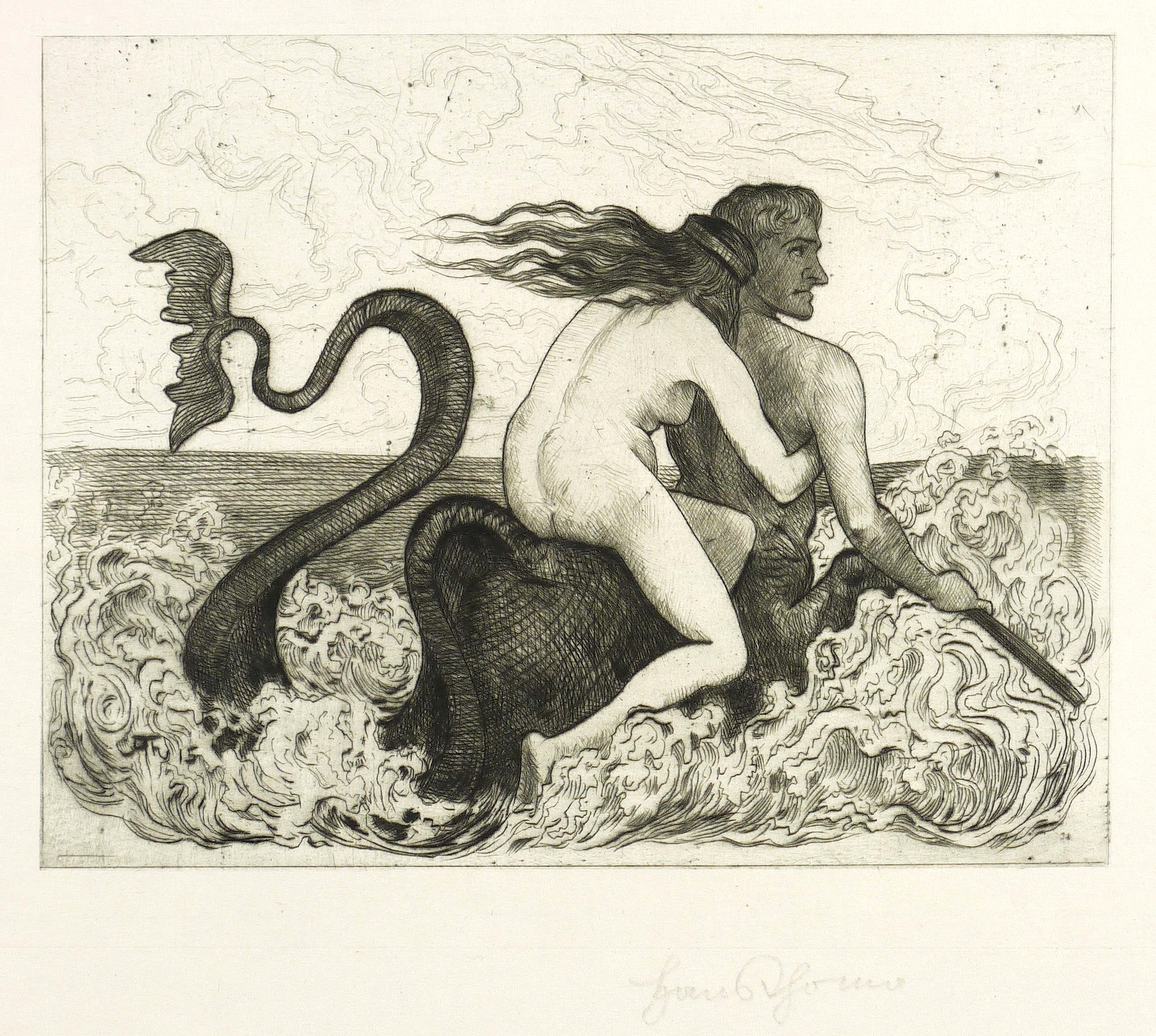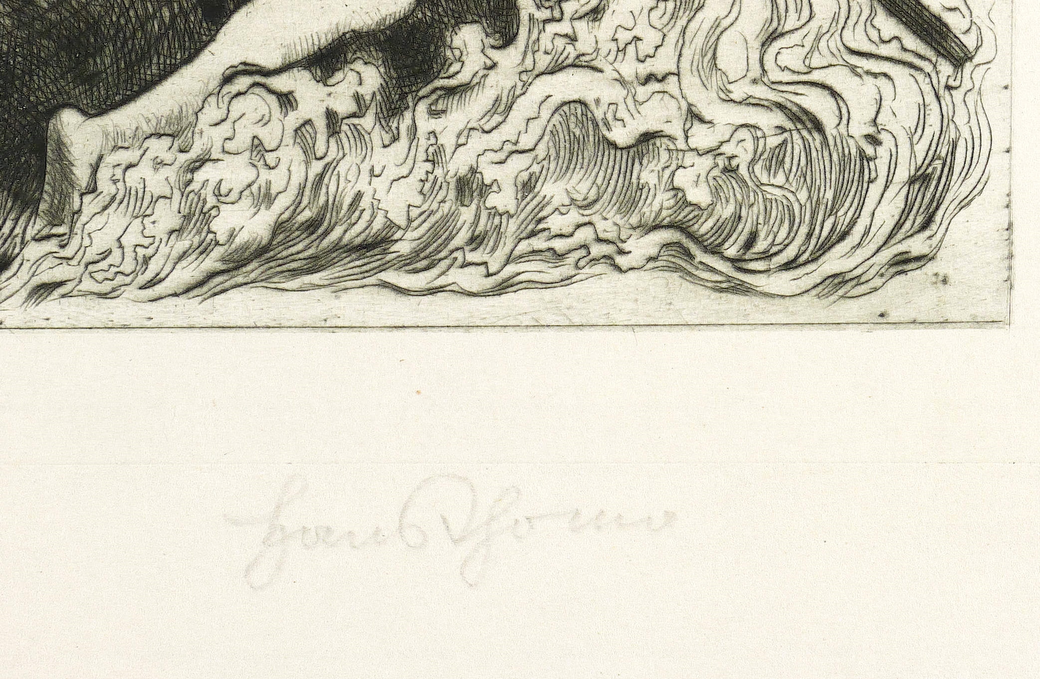 1915. Radierung / Strichätzung & Kaltnadel, in Schwarz, auf weißem Japanbütten. – Originale Künstlergrafik, von Hans Thoma. – 17,2 x 22,0 cm (Darstellung / Einfassungslinie), 19,9 x 25,1 cm (Platte), 29 x 34 cm (Blatt).