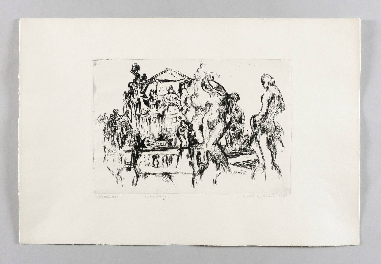 Rechts unten in Bleistift signiert und datiert. Links Titel. Dazu bezeichnet: ″1. Fassung″. – Sehr gut erhalten.