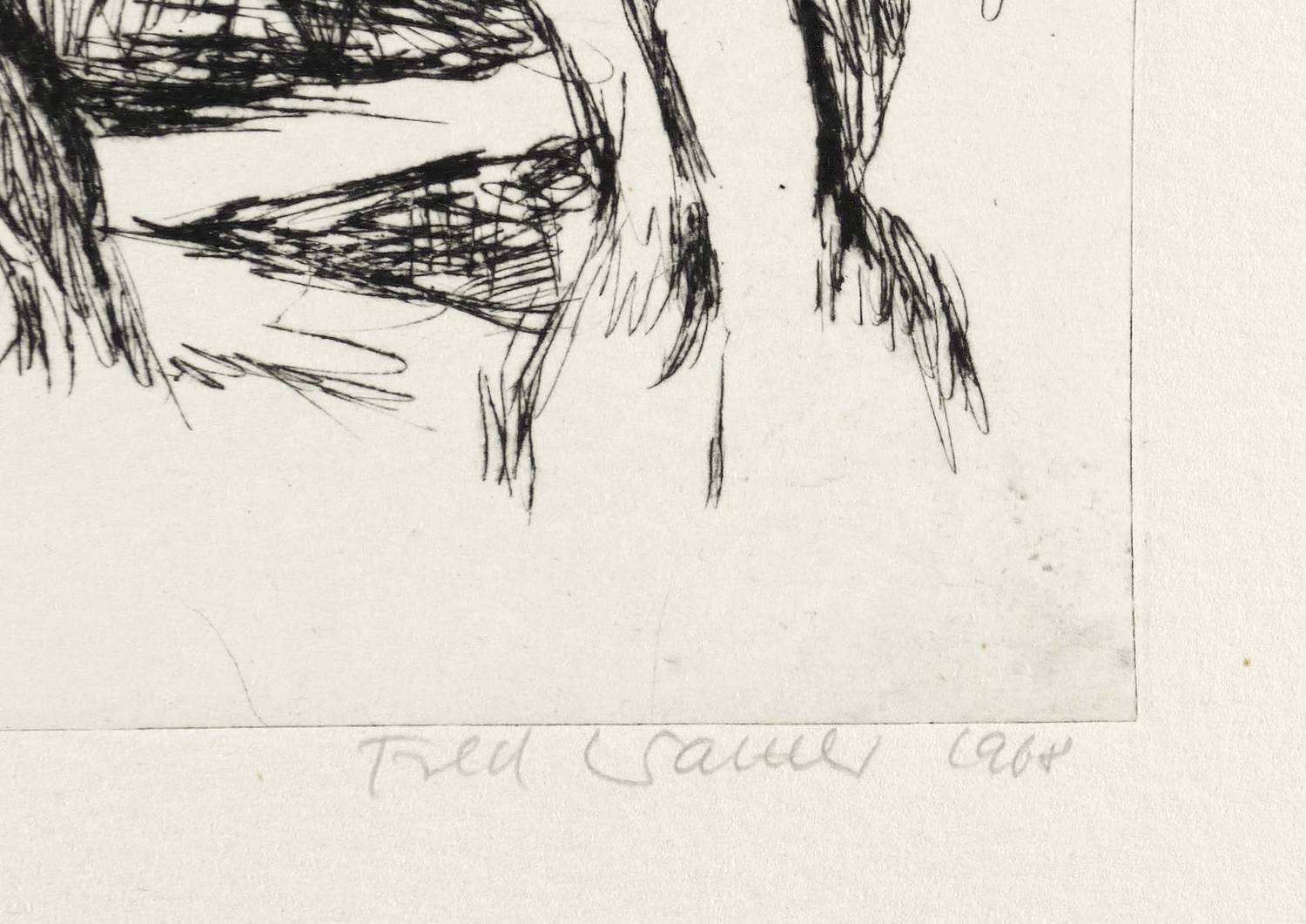 1968. Radierung / Strichätzung, in Schwarz, auf hellem Büttenkarton. – Originale Künstlergrafik, von Fred Walther. – 14,8 x 21,8 cm (Darstellung / Platte), 25 x 38 cm (Blatt).