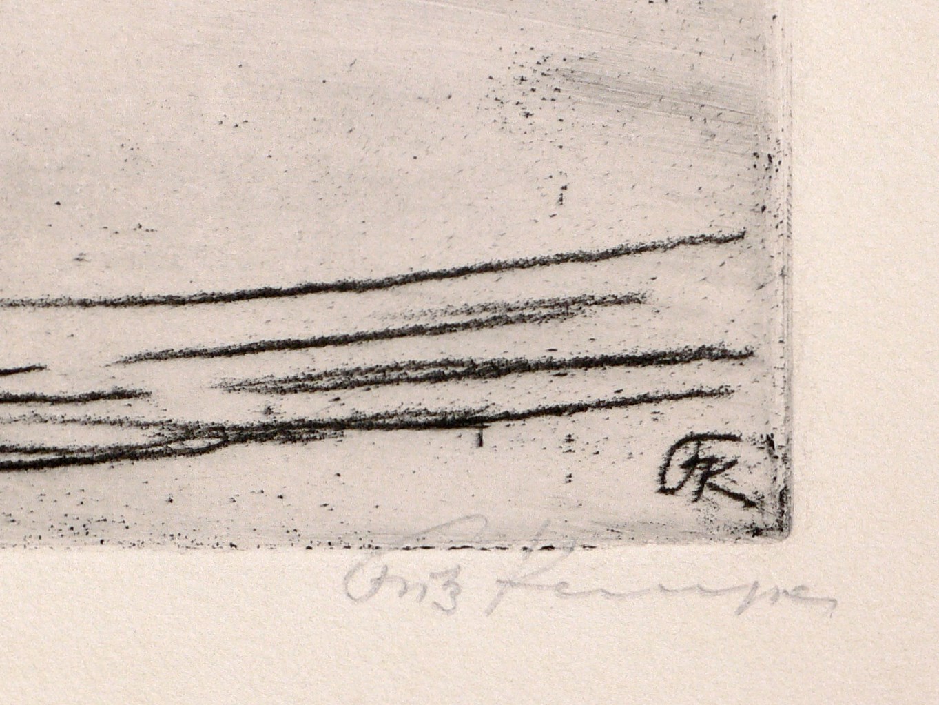 In der Platte monogrammiert unten rechts. Außerhalb der Platte in Bleistift signiert unten rechts. Am Blattrand rechts unten gestempelt ″FK″, mittig in Bleistift monogrammiert und links unten bezeichnet ″Selbstdruck″. – Blattrand etwas knickspurig und angeschmutzt. Am oberen Blattrand kleiner Einriß. Dieser verso hinterlegt. Insgesamt noch gut bis mangelhaft erhalten.