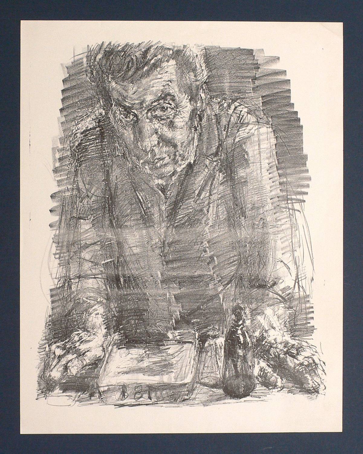 Nicht näher bezeichnet. Verso von fremder Hand in Bleistift betitelt. – Porträt des bekannten Leipziger Steindruckers Horst Arloth. Arloth wurde 1925 in Niedergrunstedt bei Weimar geboren. Im Anschluss an seine Ausbildung zum Steindrucker übernahm er 1950 die Lithografische Werkstatt der Hochschule in Weimar. Nach deren Schließung wechselte er 1954 an die Hochschule für Grafik und Buchkunst Leipzig (HGB), wo er bis 1989 äußerst erfolgreich in der Lehre tätig war. Neben den Arbeiten von Bernhard Heisig druckte er auch die lithografischen Werke von Werner Tübke, Gerhard Altenbourg, Willi Sitte, Wolfgang Peuker, Arno Rink, Rolf Münzner, Dietrich Burger und Irmgard Horlbeck-Kappler. – Blattrand atelierspurig. Oben rechts Eselsohr. Minimal gebräunt. Guter Gesamtzustand.