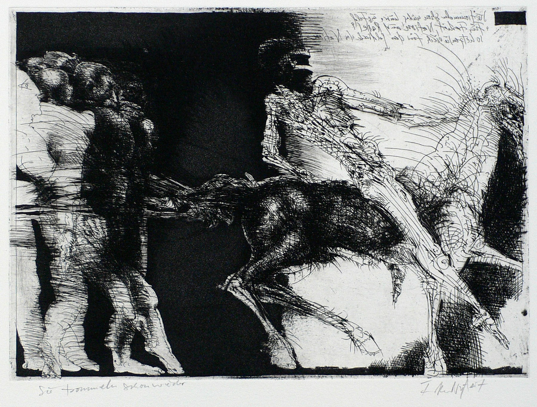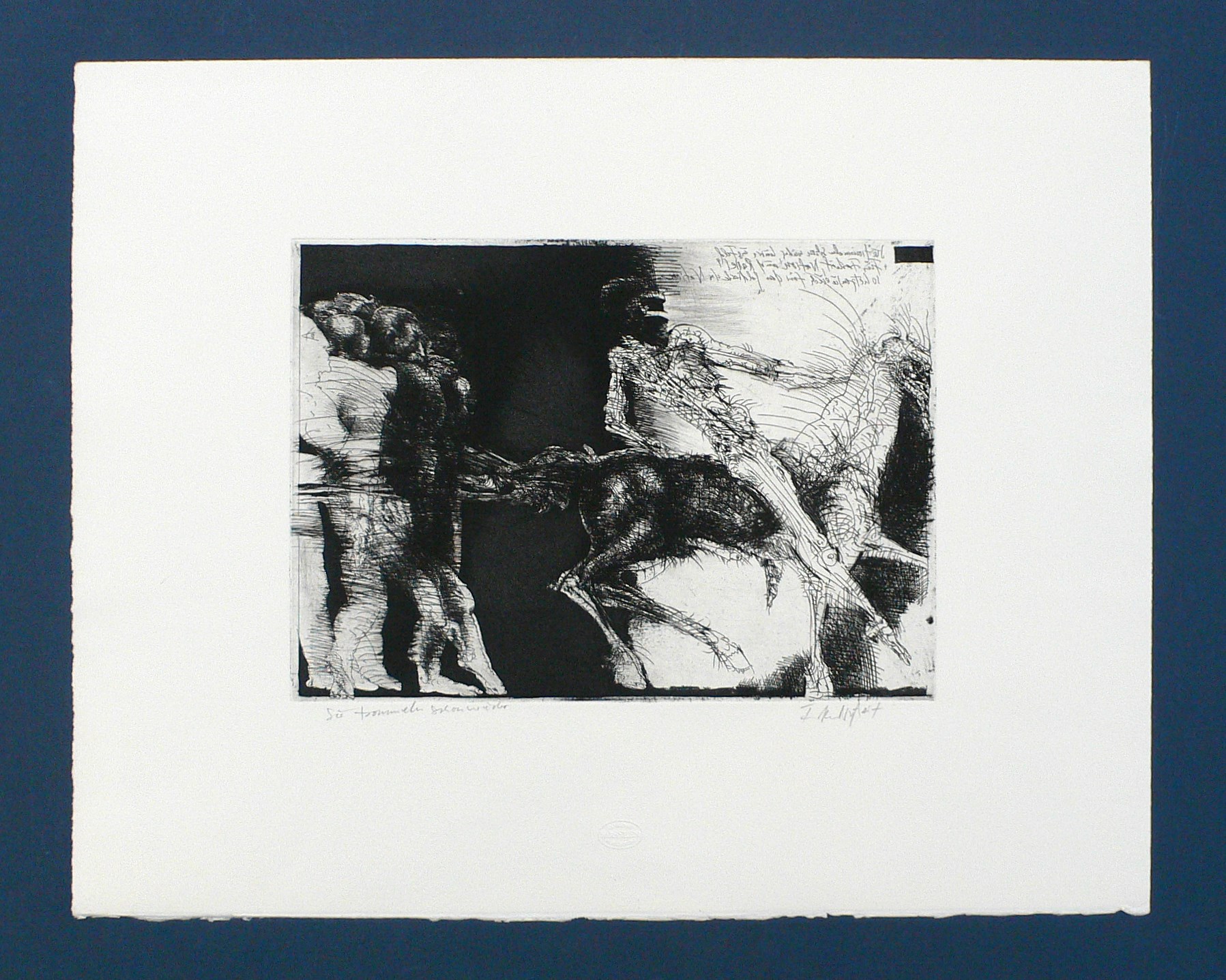 Um 1980. Radierung / Strichätzung & Aquatinta, in Schwarz, auf hellem Velin. – Originale Künstlergrafik, von Frank Ruddigkeit. – 25,5 x 36,0 cm (Darstellung / Platte), 48 x 60 cm (Blatt).