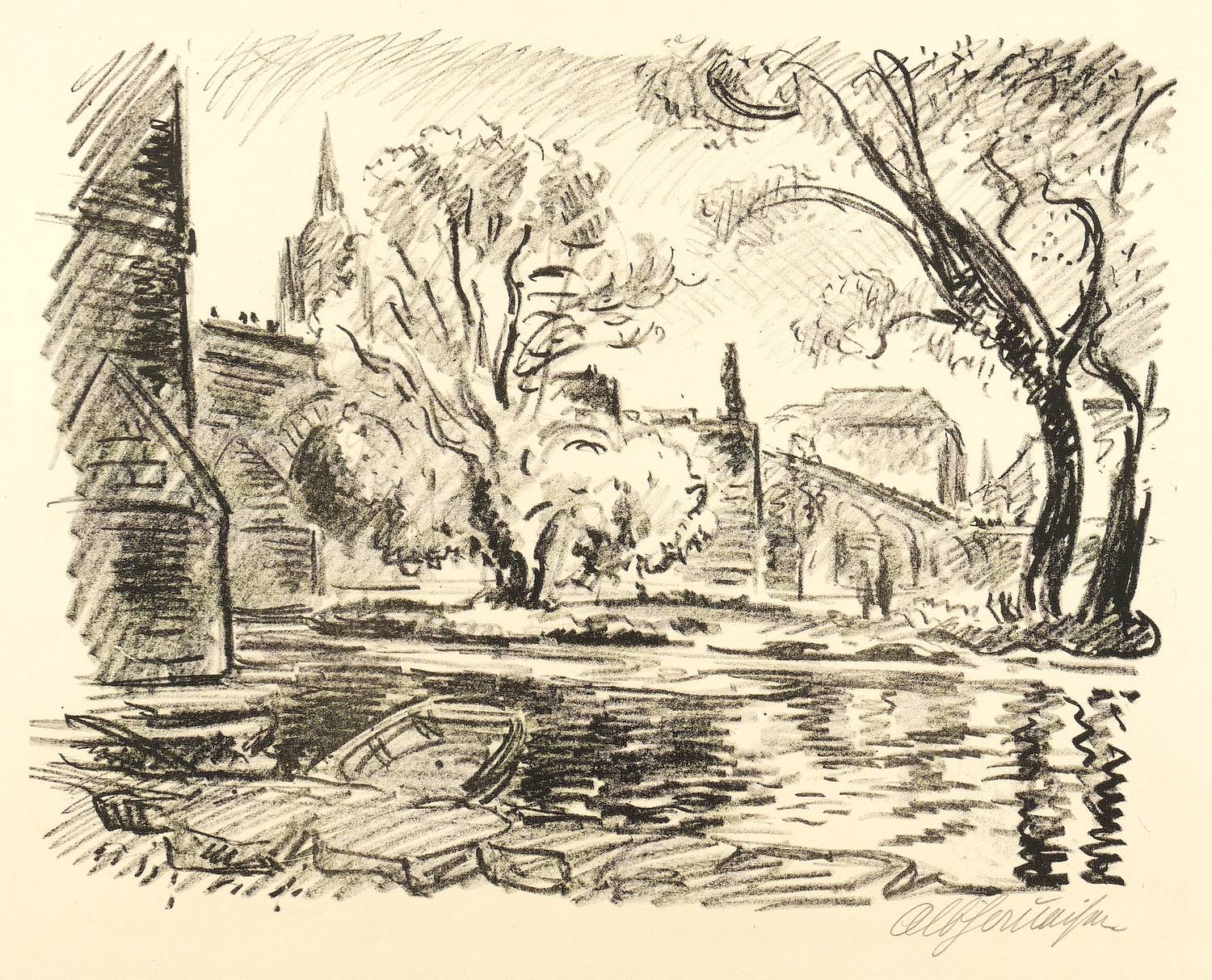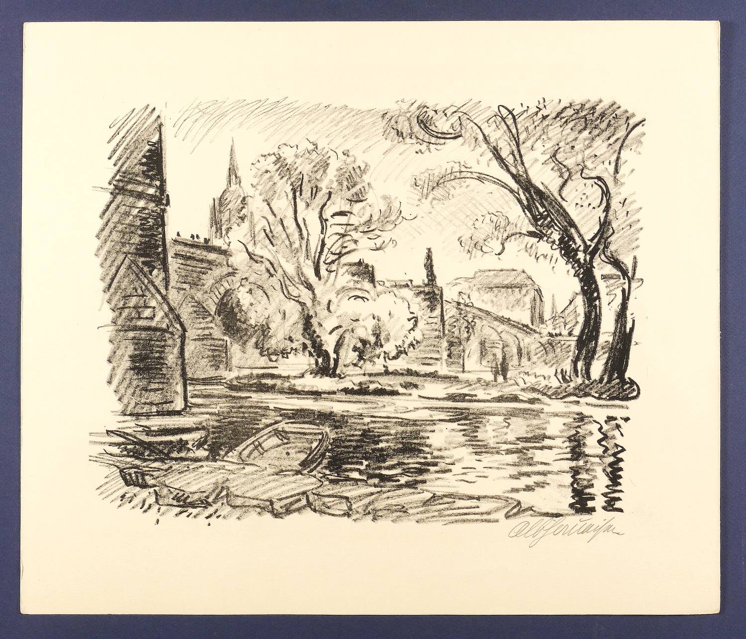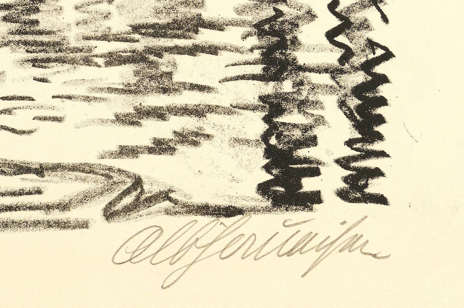 Rechts unten in Bleistift signiert. Verso Stempel der Kunstdruckerei Künstlerbund Karlsruhe (KKK) mit handschriftlicher Katalognummer ″3″. – Minimale Lagerspuren. Sehr gut erhalten.