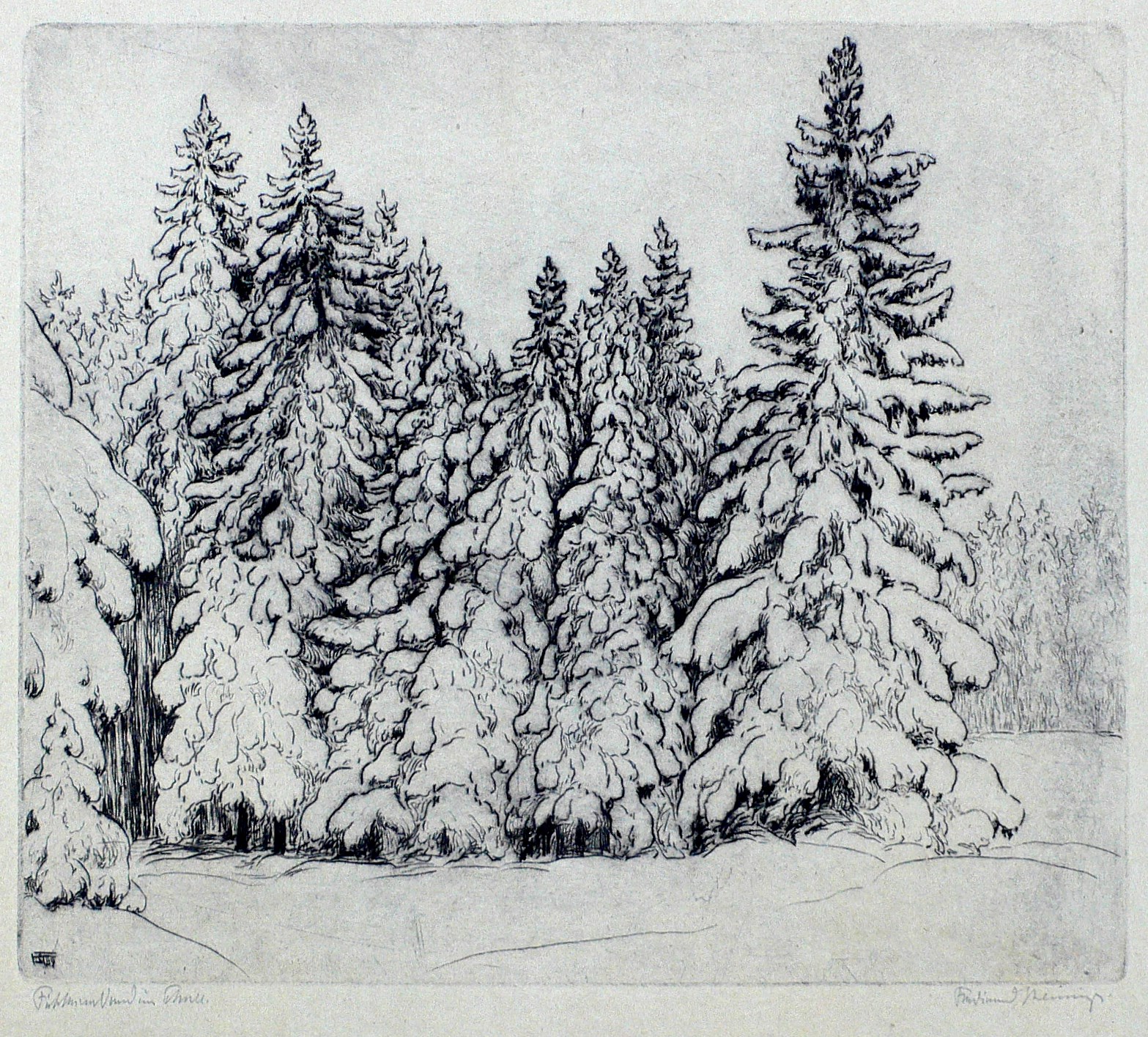 Steiniger, Ferdinand. – „Fichtenwald im Schnee”.