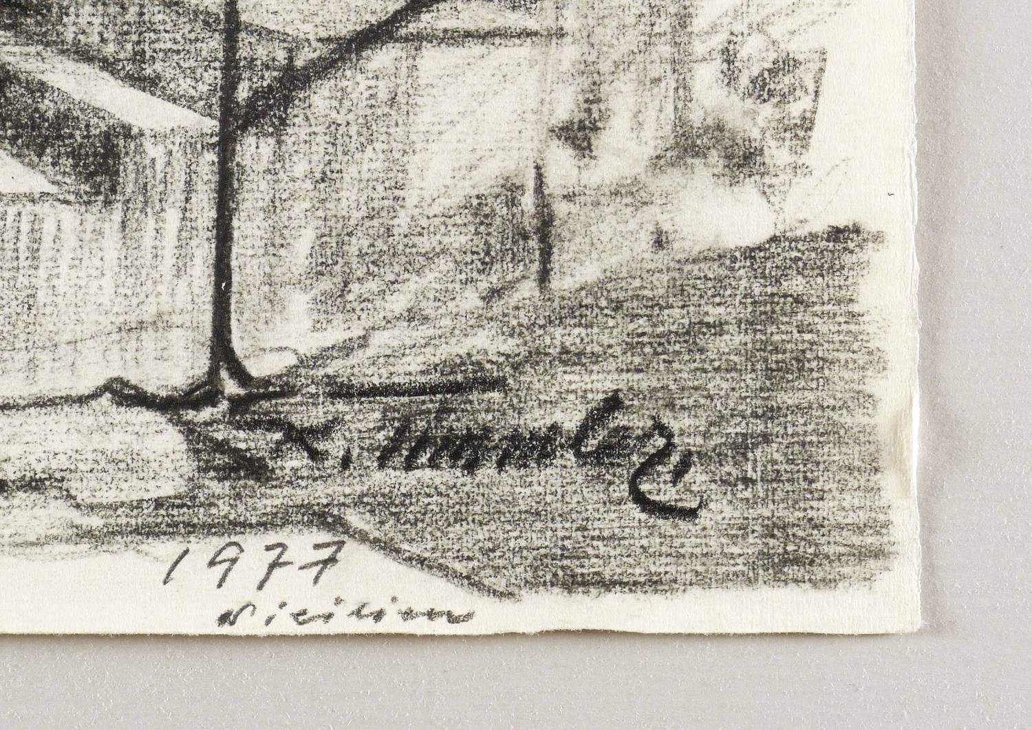1977. Zeichnung / Kreide, in Schwarz, auf feinem hellchamois Bütten. – Originale Künstlergrafik, von Karl Timmler. – Unikat. – 39,0 x 31,2 cm (Darstellung / Blatt).