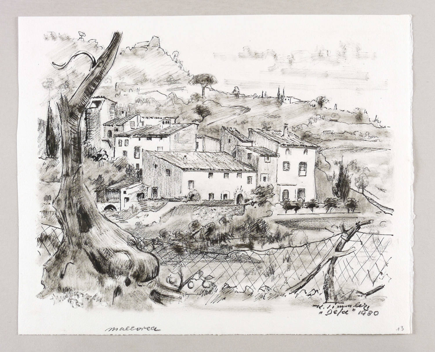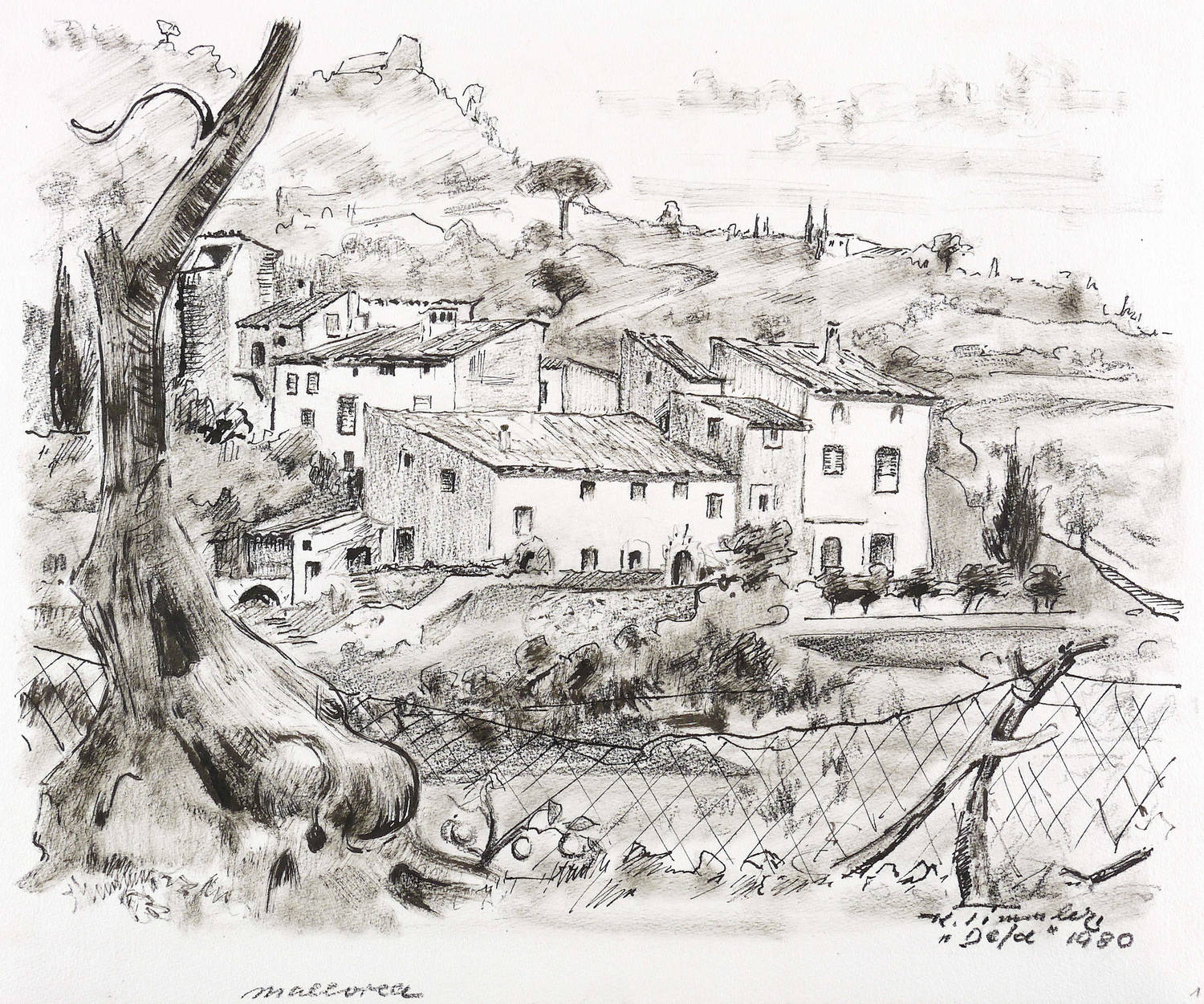 1980. Zeichnung / Feder- & Pinselzeichnung, in schwarzer Tusche, auf festem weißlichem Velin. – Originale Künstlergrafik, von Karl Timmler. – Unikat. – 32 x 40 cm (Blatt), 28,4 x 36,3 cm (Darstellung).