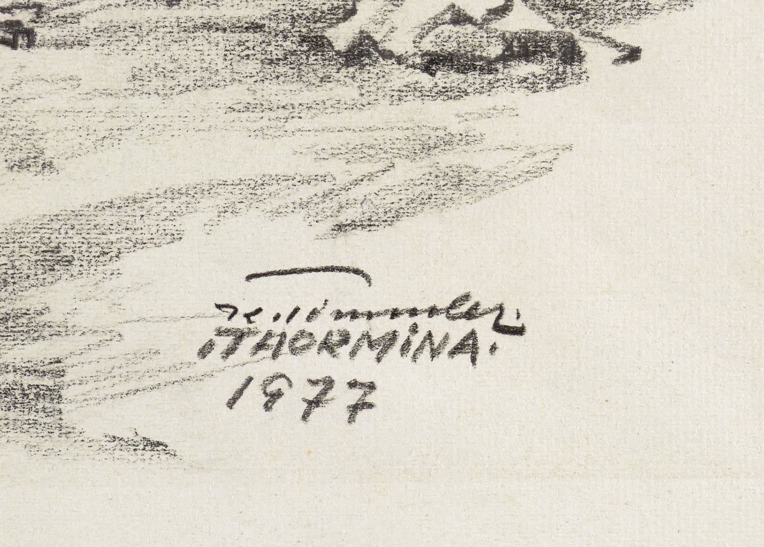 1977. Zeichnung / Kreide, in Schwarz, auf feinem hellchamois Bütten. – Originale Künstlergrafik, von Karl Timmler. – Unikat. – 31 x 40 cm (Blatt), 28,0 x 36,3 cm (Darstellung).