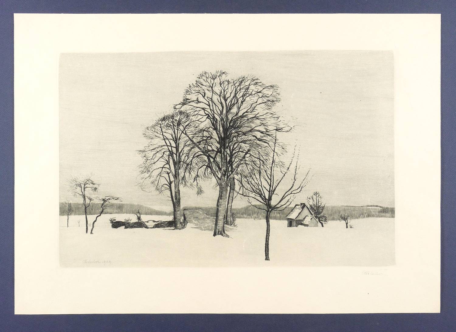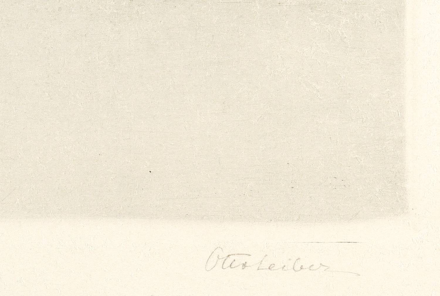 1909. Radierung / Strichätzung & Kaltnadel, mit Plattenton, in Blauschwarz, auf Kupferdruckkarton. – Originale Künstlergrafik, von Otto Leiber. – 28,1 x 43,3 cm (Darstellung), 39 x 55 cm (Blatt).