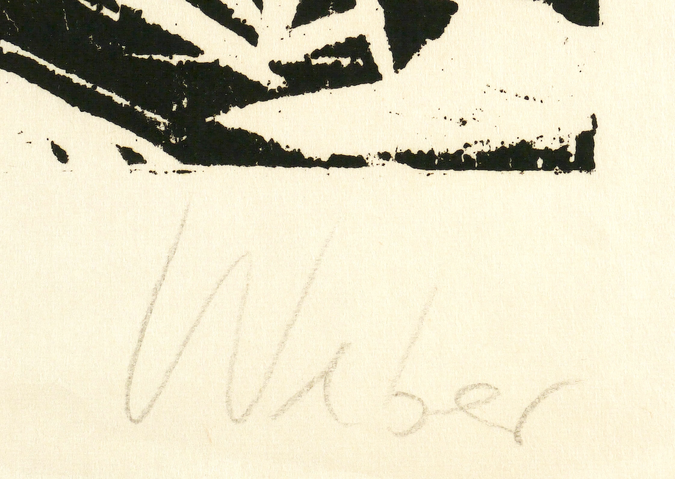 1983. Holzschnitt, in Schwarz, auf Japanbütten. – Originale Künstlergrafik, von Horst Weber. – Auflage Exemplar Nr. 55/55. – 24,7 x 12,0 cm (Darstellung / Druckstock), 31 x 18 cm (Blatt).