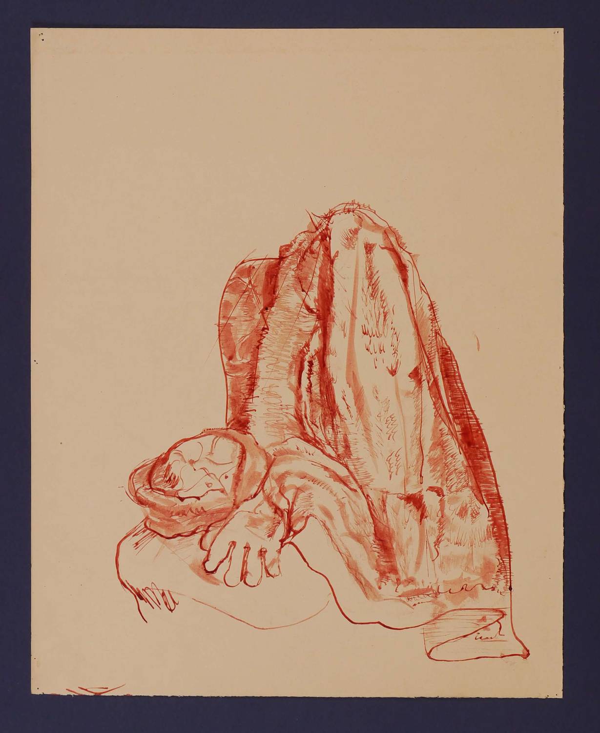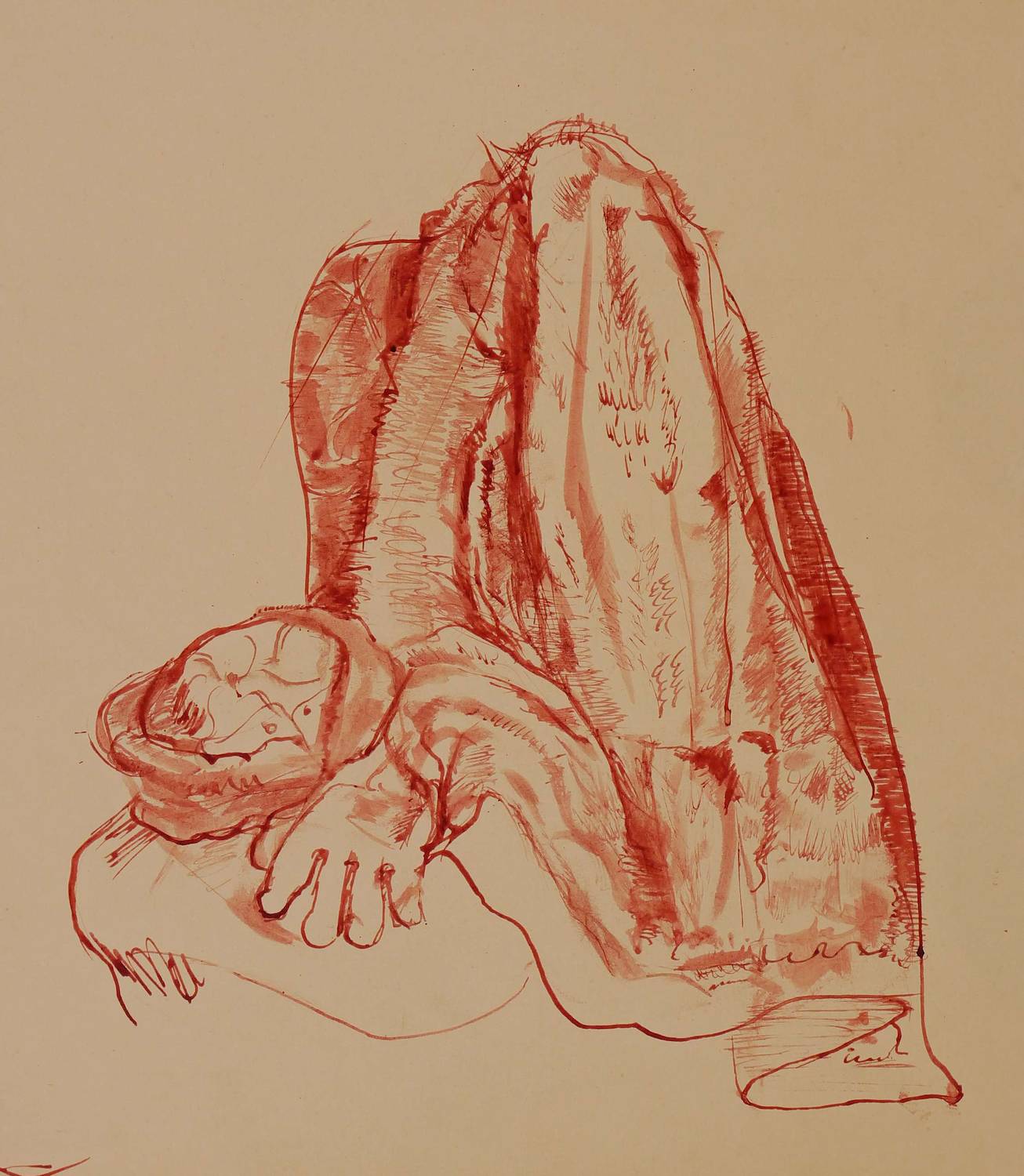 Um 1920. Zeichnung / Federzeichnung, in rotbrauner Tusche. – Originale Künstlergrafik, von Richard Otto Voigt. – Unikat. – 25,0 x 23,0 cm (Darstellung), 36,5 x 29 cm (Blatt).