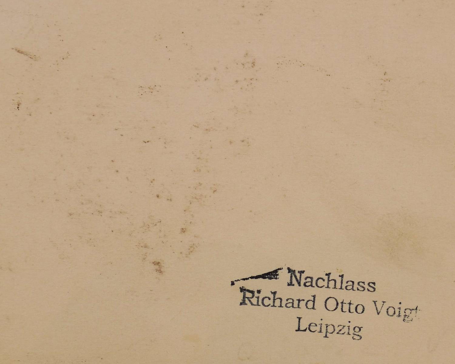 Verso Nachlass-Stempel Richard Otto Voigt, Leipzig. – Papier gegilbt. In den äußeren Ecken originale Reißzwecklöchlein. Am Blattrand leicht knickspurig. Insgesamt guter Zustand.