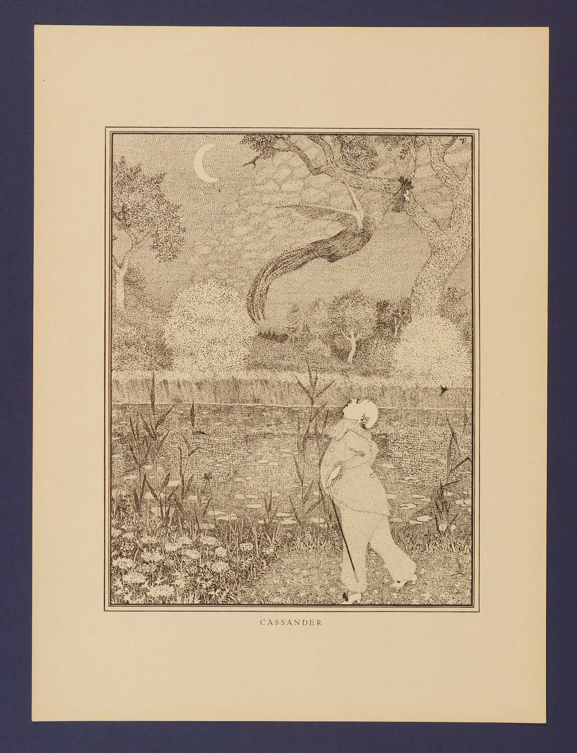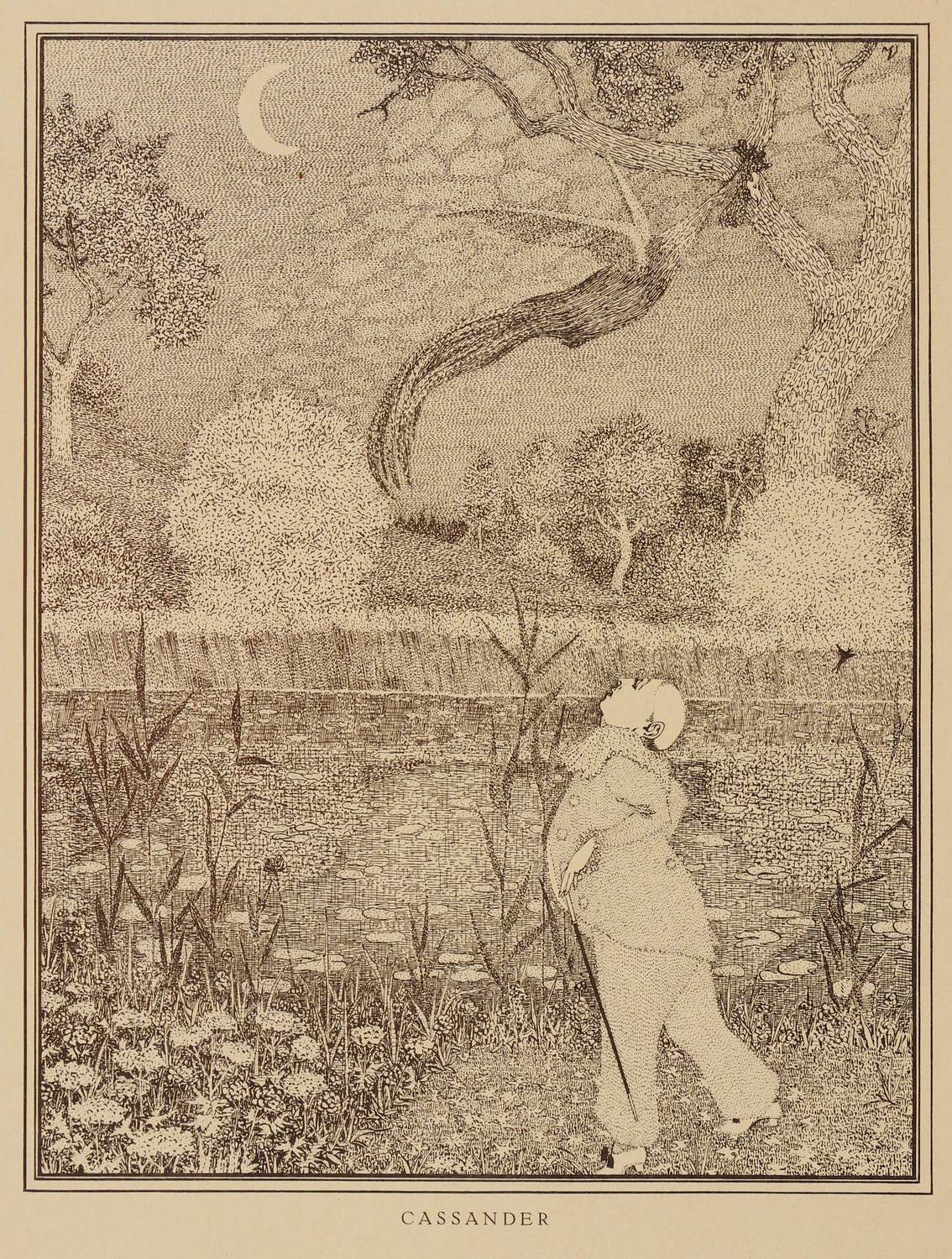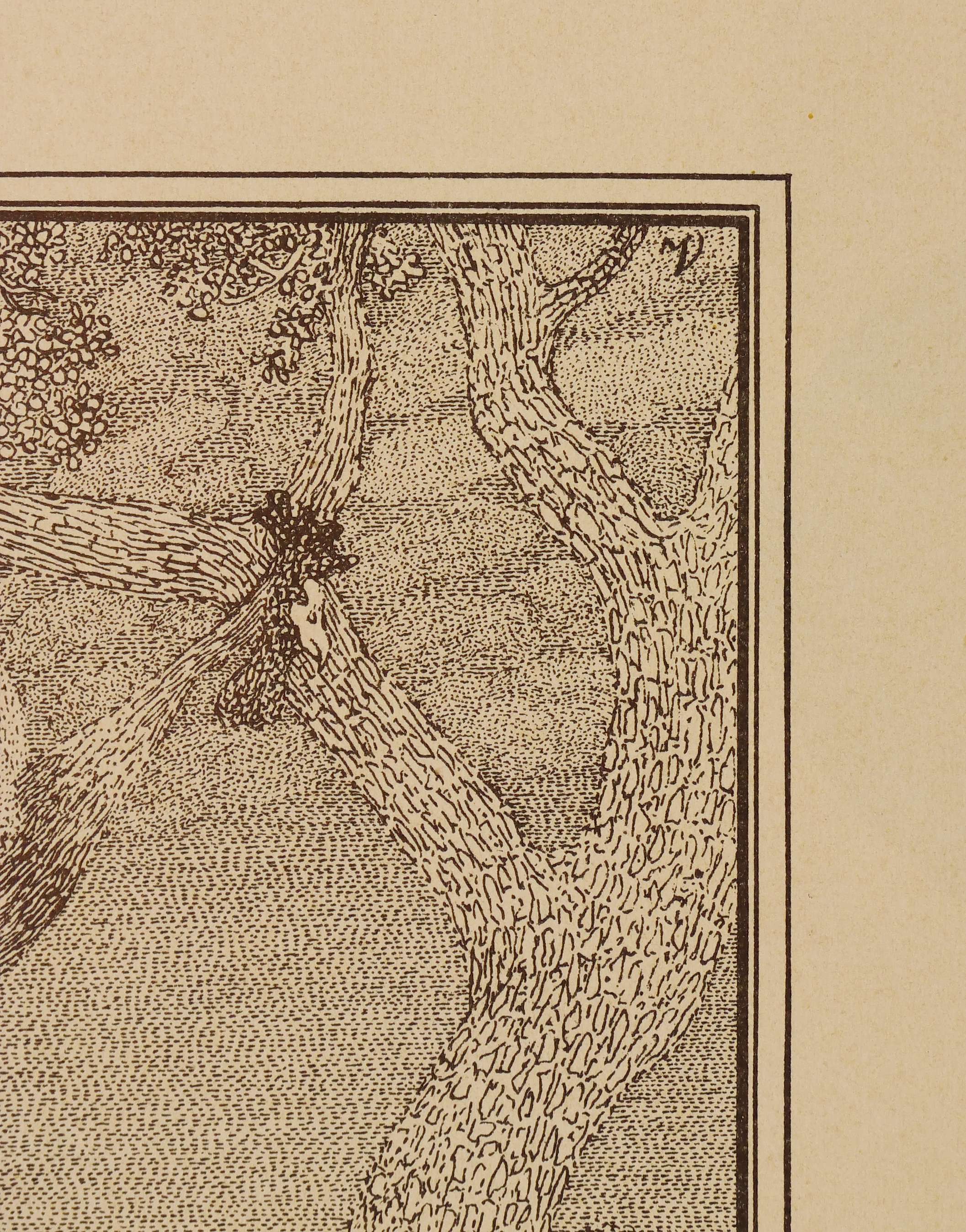 Aus: John Jack Vriesländer, Rose Mirliton. Zwanzig Zeichnungen (Kurt Wolff: 1914 ). – Nicht handsigniert. Im Stein in der Darstellung rechts oben monogrammiert. Unten Titel. – Papier etwas gegilbt und minimal knickspurig. Guter Erhaltungszustand.
