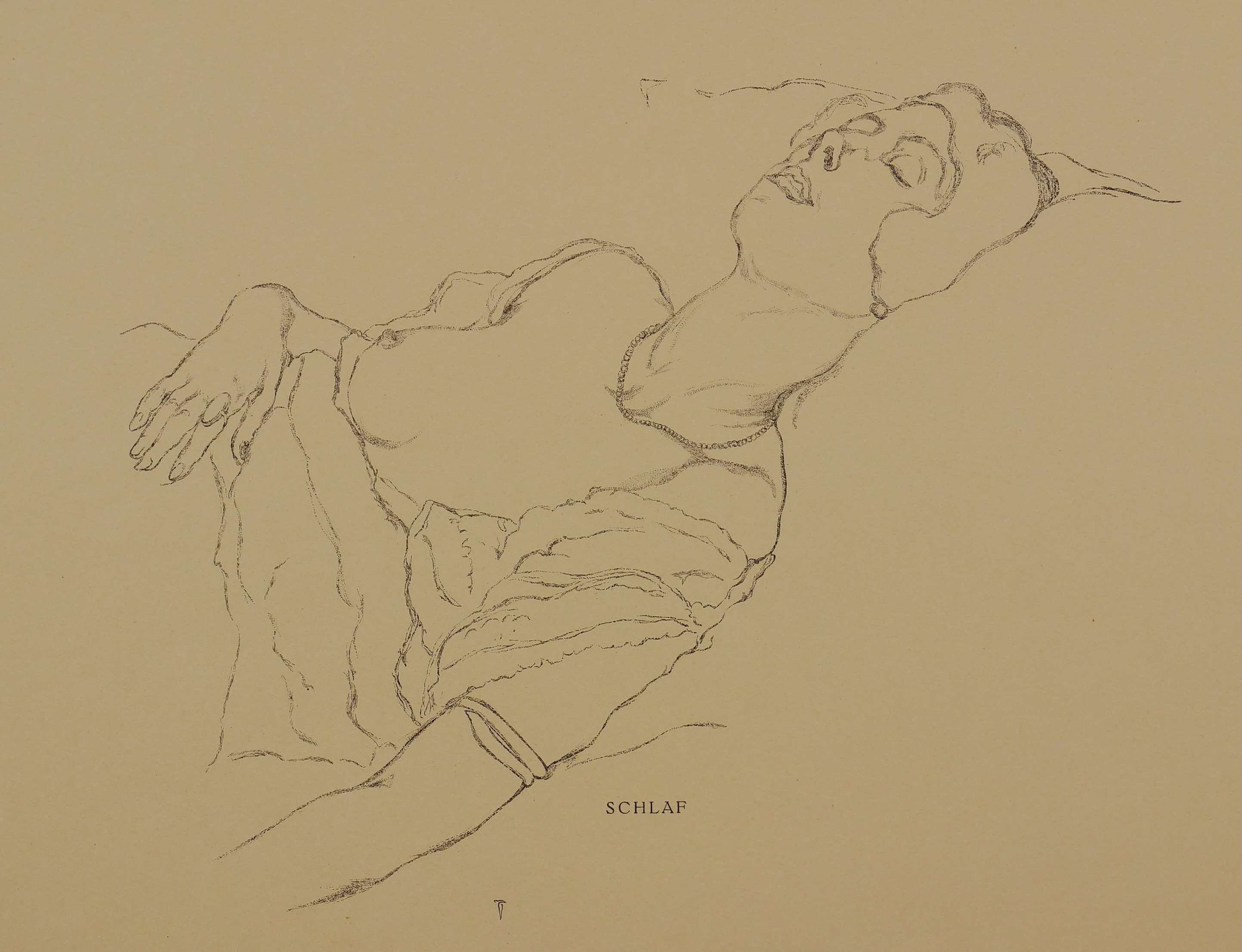 Aus: John Jack Vriesländer, Schlafende Frauen (Leipzig: Kurt Wolff 1914). – Nicht handsigniert. Im Stein unten mittig betitelt. Weiter unten monogrammiert. – Papier gegilbt. Guter Erhaltungszustand.