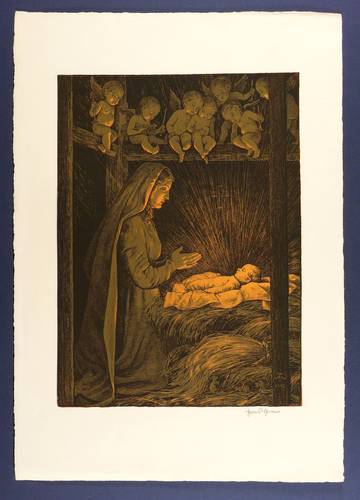 1903. Farblithografie / Feder- & Pinsellithografie, in 3 Farben, auf kräftigem Büttenkarton. – Originale Künstlergrafik, von Hans Thoma. – 50,2 x 36,9 cm (Darstellung / Druckbild), 71 x 50 cm (Blatt).