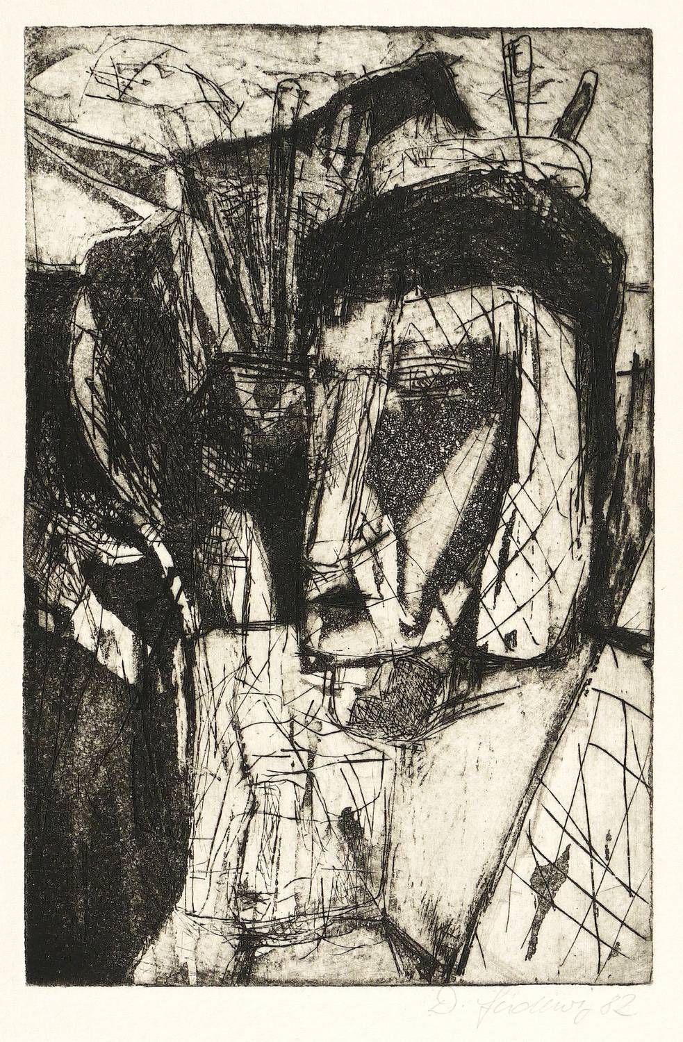 1982. Radierung / Strichätzung & Aquatinta, in Schwarz, auf Weißenborn-Bütten. – Originale Künstlergrafik, von Dieter Ladewig. – 18,6 x 12,1 cm (Darstellung / Platte), 24 x 18 cm (Blatt).