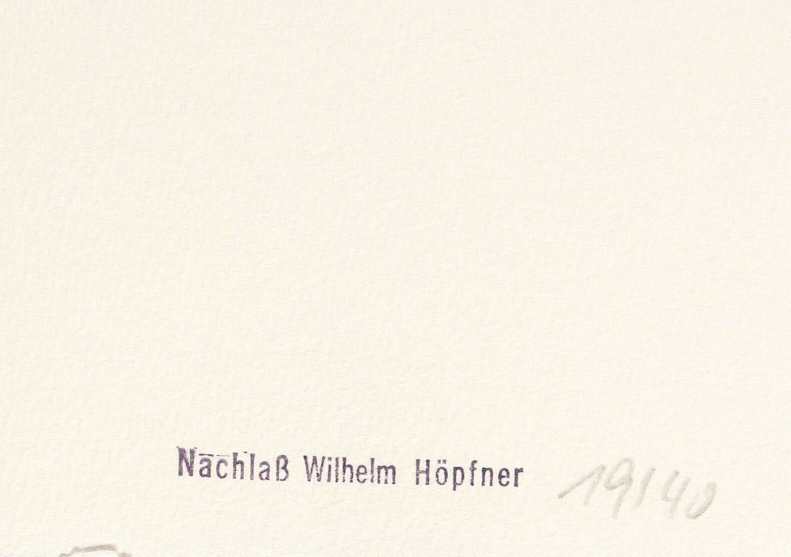 Wilhelm Höpfner (1899 Magdeburg - 1968 Magdeburg). Deutscher Maler und Grafiker. 1918 ein Semester Ausbildung an der Kunstgewerbe- und Handwerkerschule in Magdeburg bei Richard Winckel. 1918-21 Studium an der Staatlichen Kunstschule Berlin. 1921-23 Mitglied der Künstlervereinigung 'Die Kugel'. Teilnahme an der Berliner Sezession. Bekanntschaft mit Käthe Kollwitz und Max Liebermann. 1933-45 Beschlagnahmung seiner Arbeiten für die Aktion "Entartete Kunst". Ab 1955 Einzelausstellungen. 1966 Puppengestaltung, Bühnenbild und Gesamtausstattung für die Inszenierung 'Die Himmelfahrt der Galgentoni' von Egon Erwin Kisch am Städtischen Puppentheater Magdeburg.