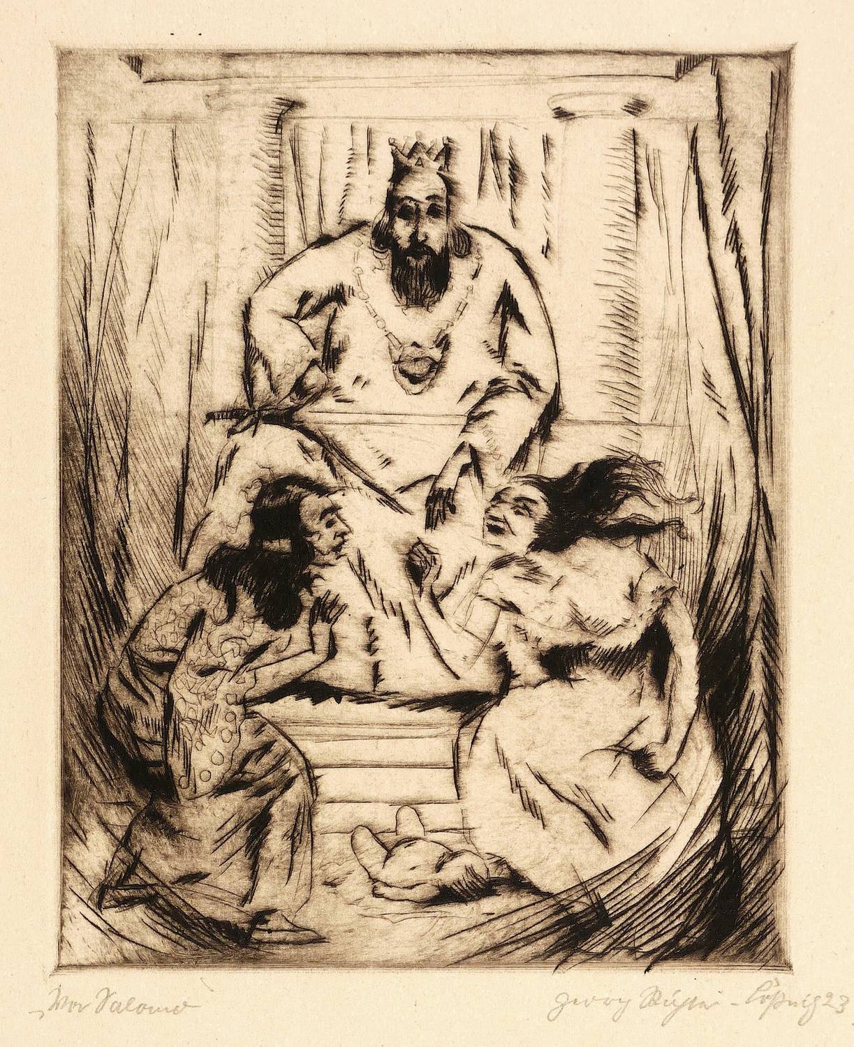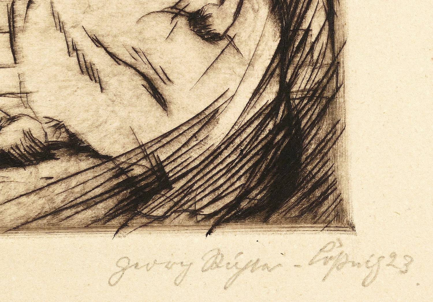 1923. Radierung / Kaltnadel, in Schwarz, auf gelbem Kupferdruckpapier. – Originale Künstlergrafik, von Georg Richter-Lößnitz. – 19,7 x 15,7 cm (Darstellung / Platte), 35 x 27 cm (Blatt).