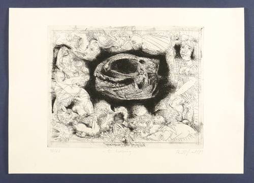 Frank Ruddigkeit (*1939 Grenzberg/Ostpreußen - heute Pridorozhnoye - 2025 Leipzig). Deutscher Maler, Grafiker und Buchkünstler. 1957-62 Studium an der Hochschule für Grafik und Buchkunst Leipzig bei Heinz Wagner und Hans Mayer-Foreyt. 1963 Lehrauftrag am Institut für Kunsterziehung der Universität Leipzig. Aspirant an der Hochschule für Grafik und Buchkunst Leipzig. Ab 1964 freischaffend als Maler, Grafiker, Bildhauer und Medailleur tätig. 1974-2004 Lehrtätigkeit an der Burg Giebichenstein (Hochschule für Kunst und Design) in Halle. 1981 Berufung zum Professor. 1974-78 Vorsitzender des Bezirksverbandes Leipzig des Verbandes Bildender Künstler der DDR.