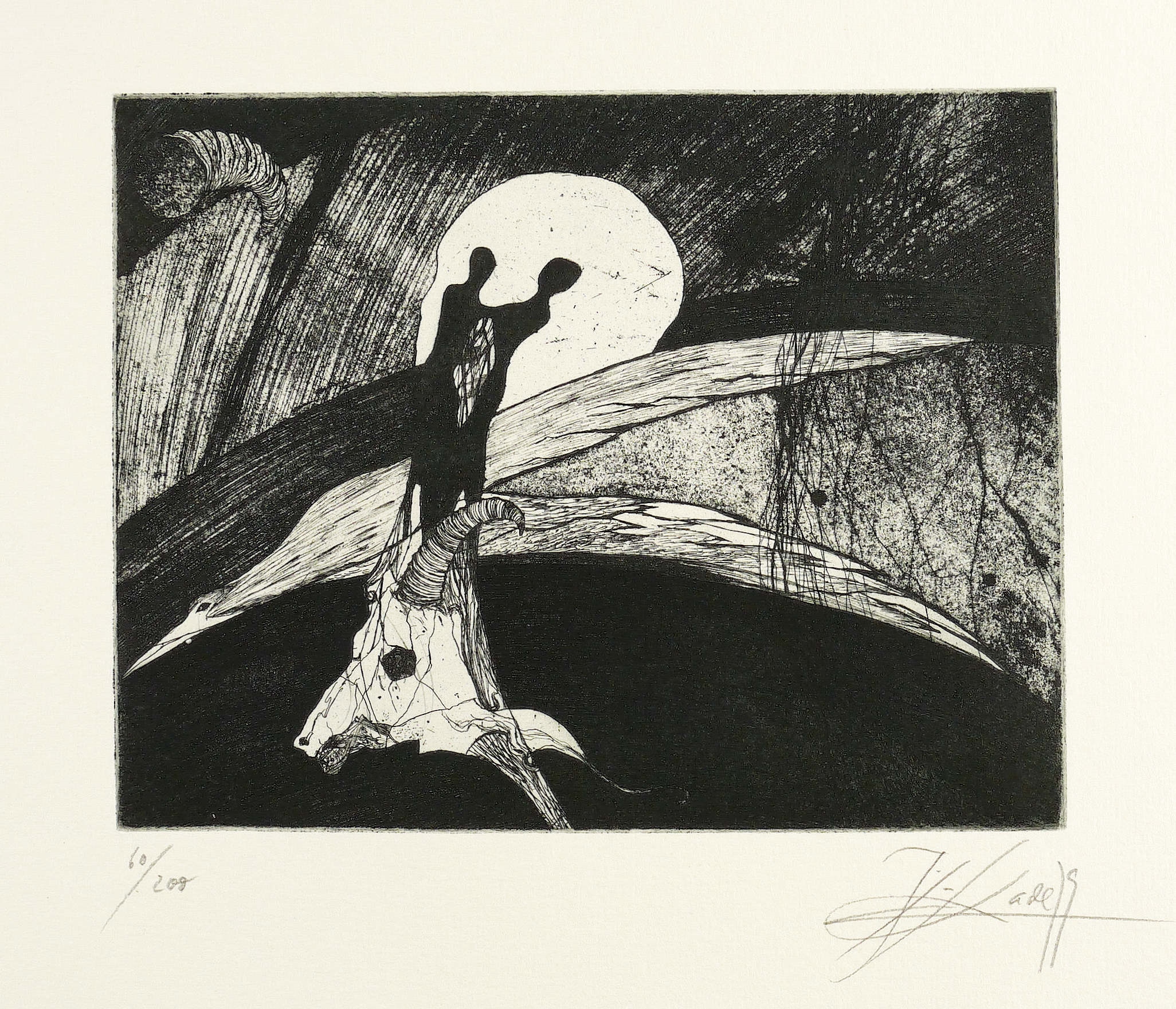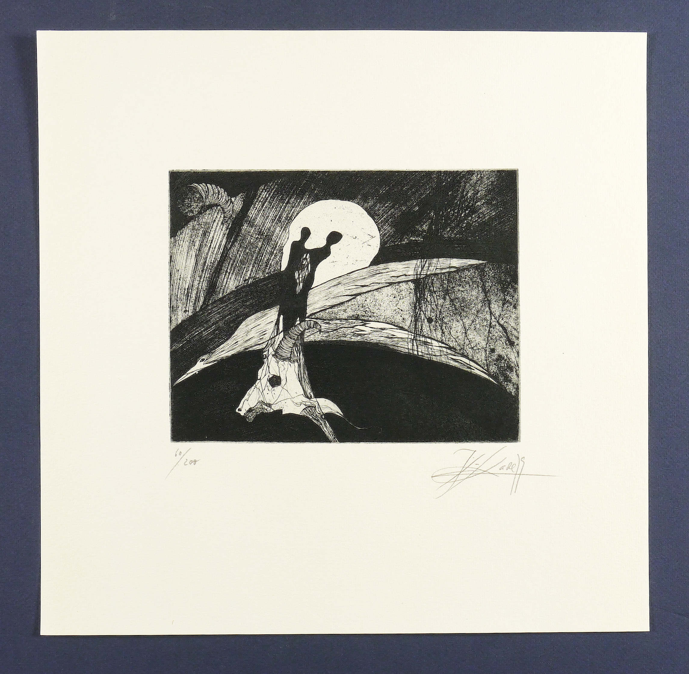 1979. Radierung / Strichätzung & Reservage, in Schwarz, auf hellem Büttenpapier. – Originale Künstlergrafik, von Gregor Torsten Kozik. – Auflage Exemplar Nr. 60/200. – 15,9 x 20,2 cm (Darstellung / Platte), 35 x 35 cm (Blatt).